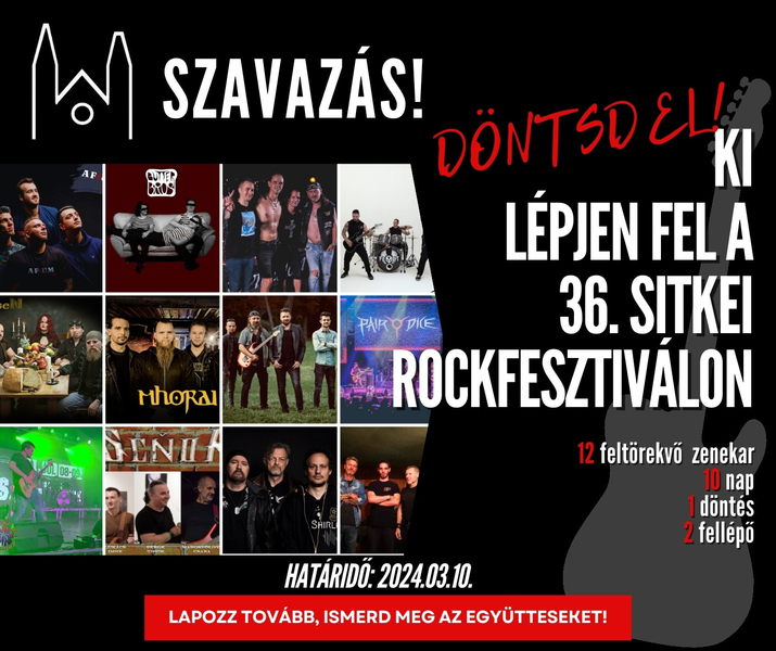 Közönségszavazást indítottak a Sitkei Rockfesztivál szervezői - A közönséget is bevonják a műsorösszeállításba a XXXVI. Sitkei Rockfesztivál szervezői. A Kápolnáért Kulturális és Sportegyesület az amatőr, feltörekvő zenekarok népszerűsítése érdekében szavazást indított Facebook-oldalán.