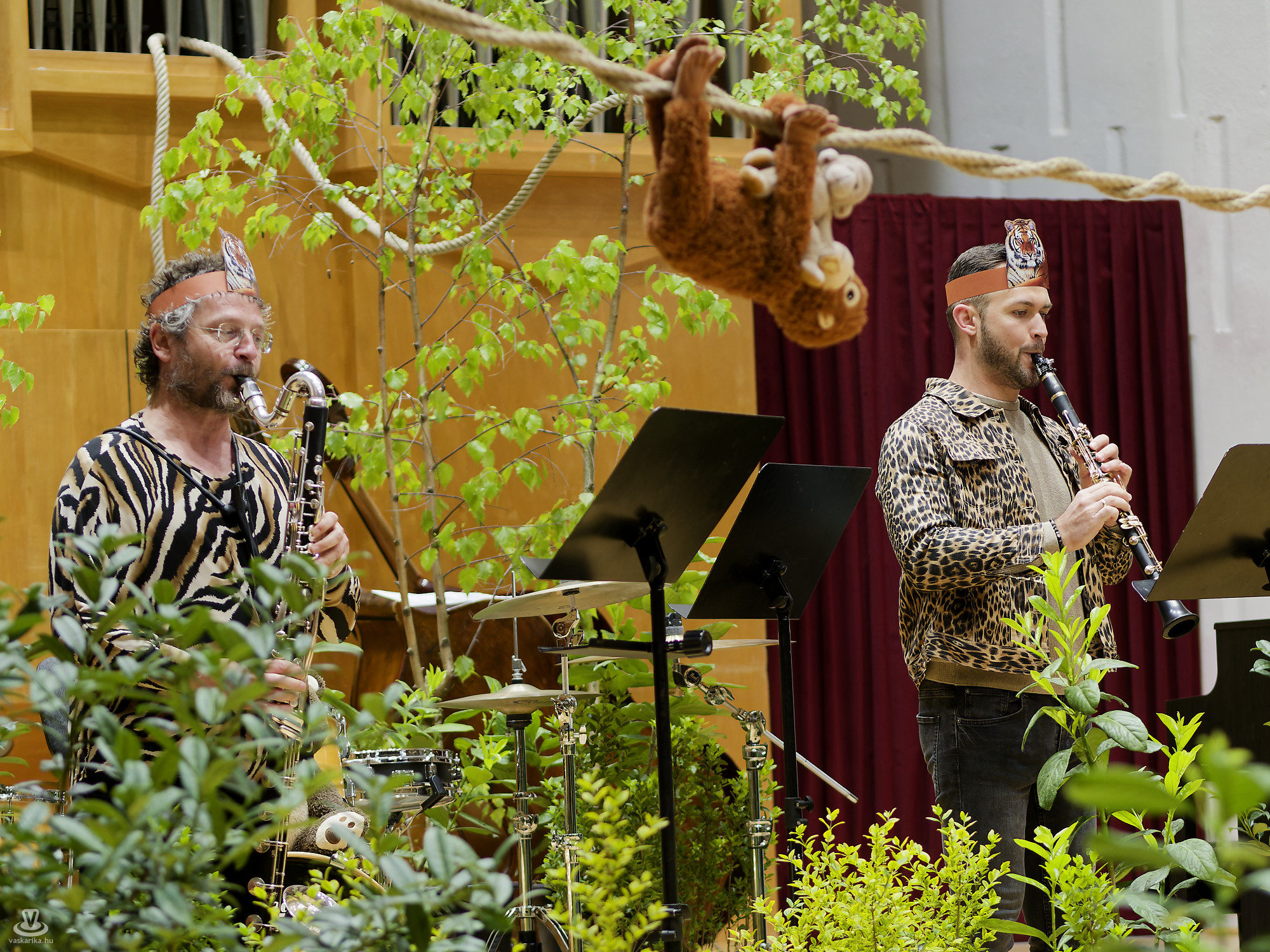 A történetben olyan dialógusok vannak, hogy olykor már az ikonikus Asterix-szinkron szintjére emelkedik egy-egy poén, amit mi, felnőttek lehet, jobban értettünk, mint a kisgyerkőcök, de őket meg biztosan lenyűgözte a Bartók Terem dzsungel-világa, és a zenészek állatokat megformáló öltözete, viselkedése (ugye, hogy a majmok vittek mindent? )