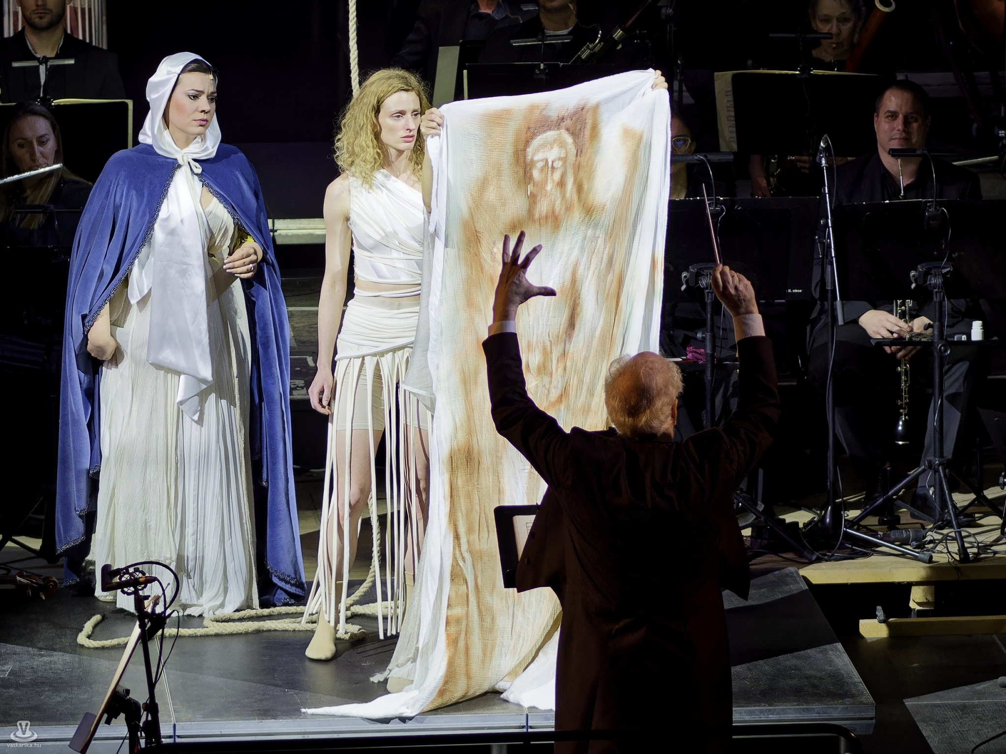 A Savaria Szimfonikus Zenekart és a Nemzeti Énekkart Kovács János vezényelte összefogottan. A pantomim színt vitt az előadásba, s a kiváló vetített háttér is látványosan és híven szolgálta a játékot. A jelmezek kissé didaktikusak voltak, de ez - a középkor óta meglévő misztériumjáték-hagyomány szerint - természetesen hatott. Összességében minden művész átérezte az előadás különleges voltát, így a szemlélő egyedi, maradandó élménnyel gazdagodott.