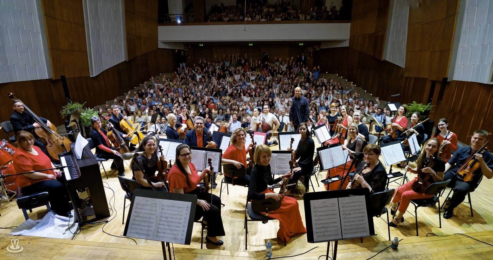 Egyszerre volt könnyed, vérpezsdítő és andalító a Sárvári Vonósok tavaszi hangversenye, amire rendhagyó módon a Bartók Teremben került sor. A "Dúdold velünk és táncolj" műsorban Csikós-Kovács Évi művészeti vezető felkonferálásai után elhangzott kórusének és keringő, tangó és tarantella, kacsatánc és kalinka, funky, roki és twist is. Az előadást tovább színesítette egy Bach-műben fellépő beatbox-os, Bognár Ádám, egy rock and roll számban pedig a Galaxy R'n'R Klub párosa, Pajor Dóra - Rabi Márton ragasztotta a szemeket a Bartók Terem mennyezetére, a táncoslány ugyanis többet volt szinte a levegőben, mint a földön. A vastaps és a közönséggel közös fotó pedig méltó finise volt a kétórás, nagyszerű estnek.