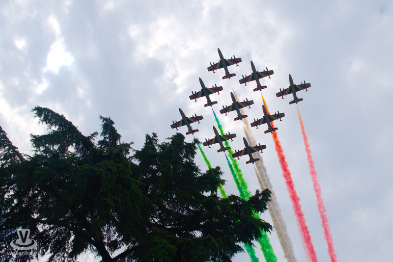 Fogadtatásunk látványosra sikerült, az olasz légierő gépei kötelékben húztak el a város fölött többször is, trikolor sávokat húzva maguk után. Az olaszok ujjongtak, tapsoltak, velük persze mi is, fordított sorrendben értelmezve a három színt.