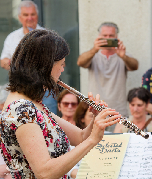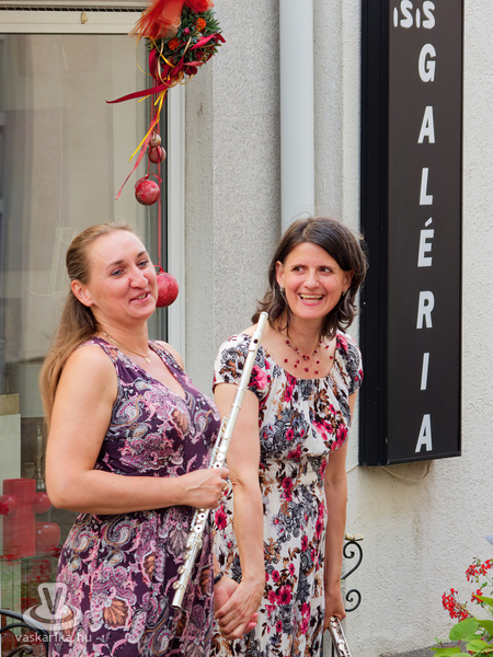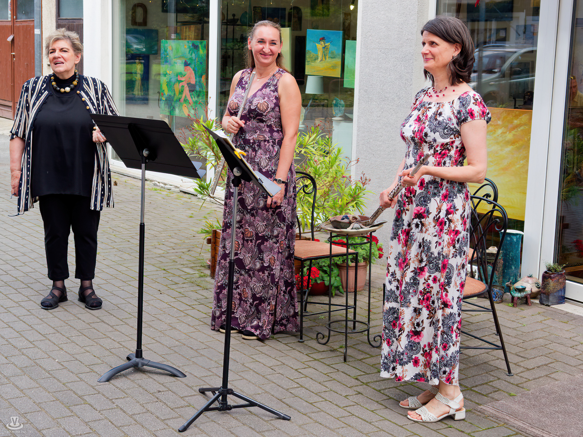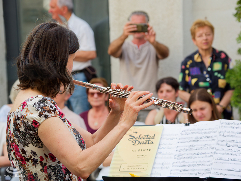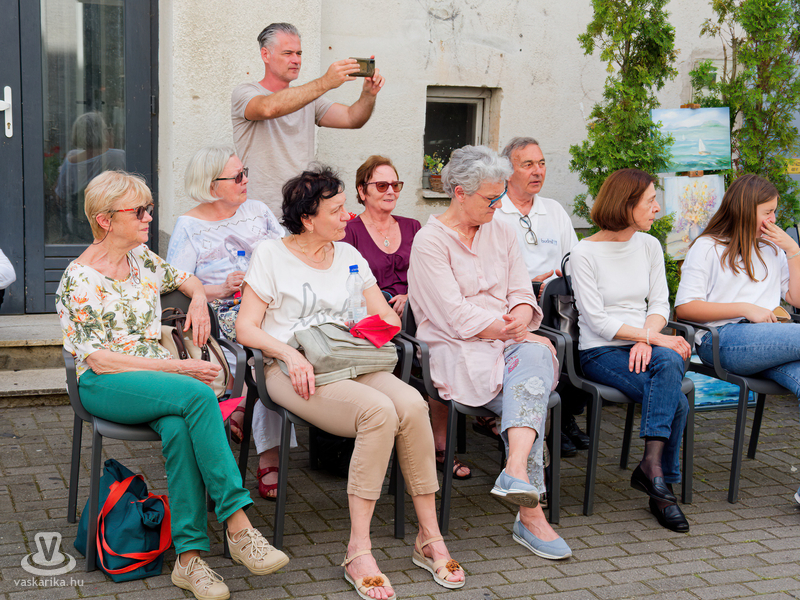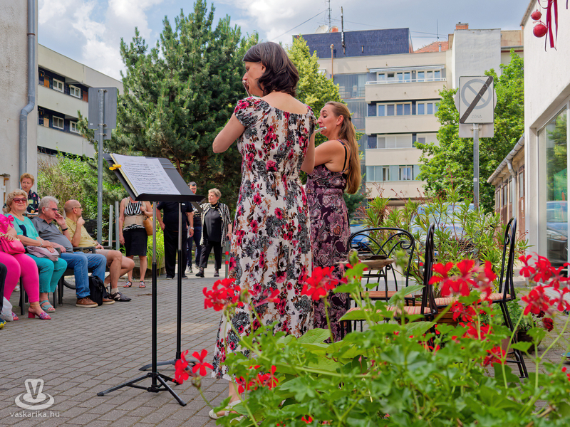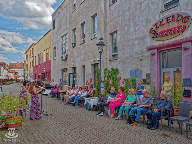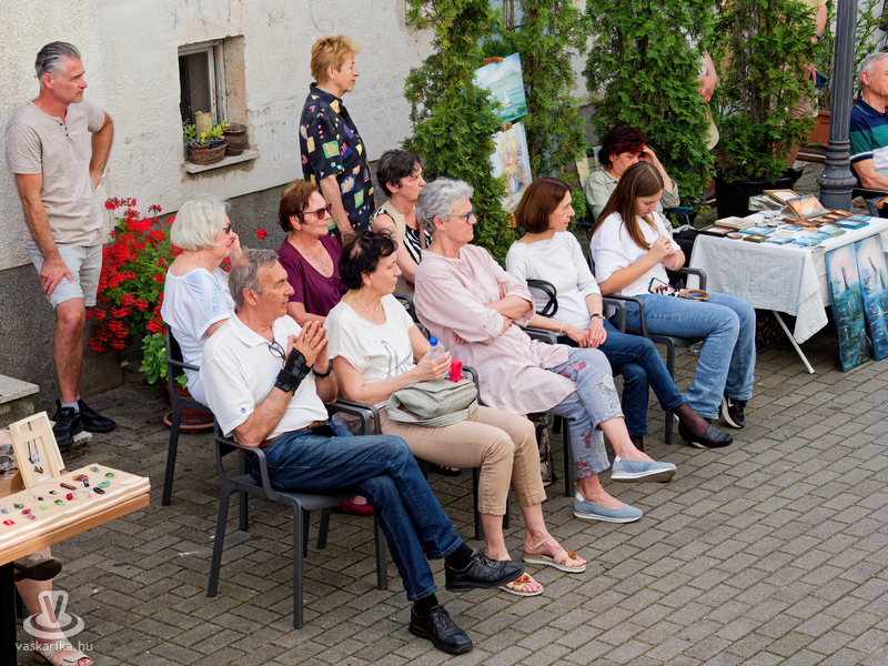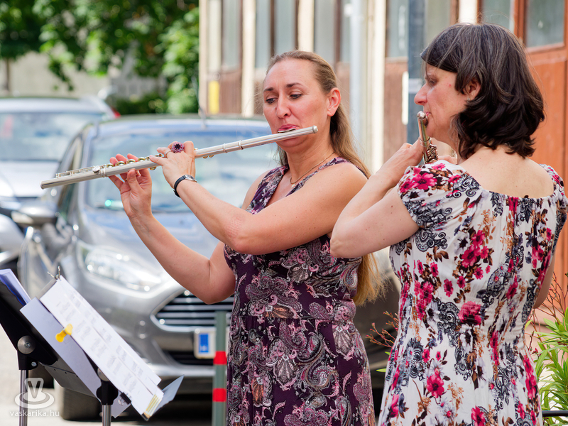 Balogh István Péter és T. Takács Tibor képei mellett az üvegékszer és a kerámia mesterfogásaiba avatták be a Mediterrán Udvarba látogatókat, és a művésztér hangulatához passzoló muzsika sem maradhatott el a nyáreleji délutánból. Kameránkkal Joó Nikoletta fuvolaművész és Mátyás Gyöngyi fuvoladuójának minikoncertjét élvezhette a művészetpártoló közönség.