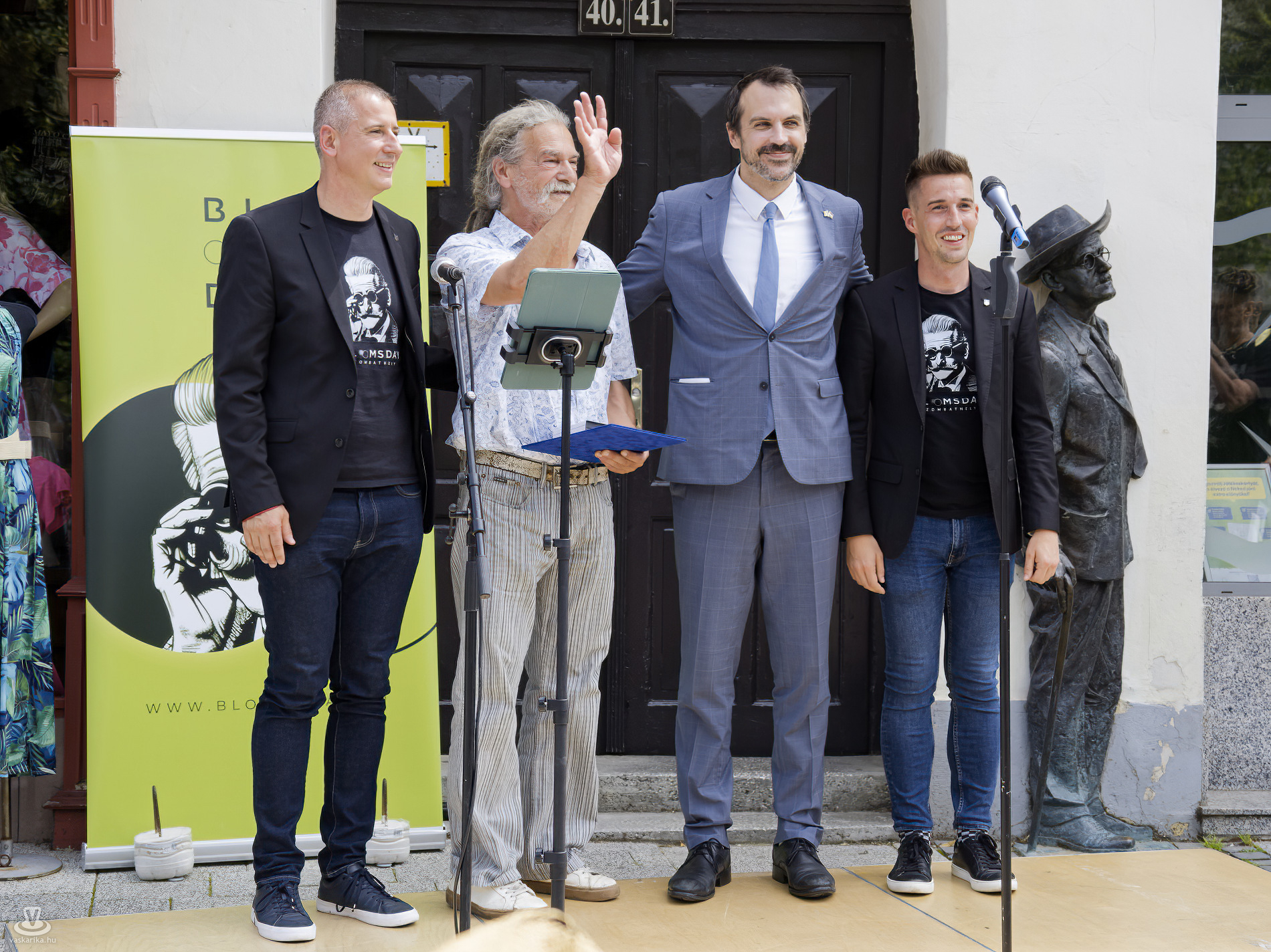 A megnyitóbeszédeket követően adták át a Szombathelyi-Bloom díjat, amit idén Viola László kapott, aki a fesztivál ikonikus arca, és a kezdetektől részt vesz a Bloomsday szervezésében.