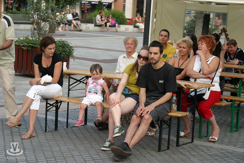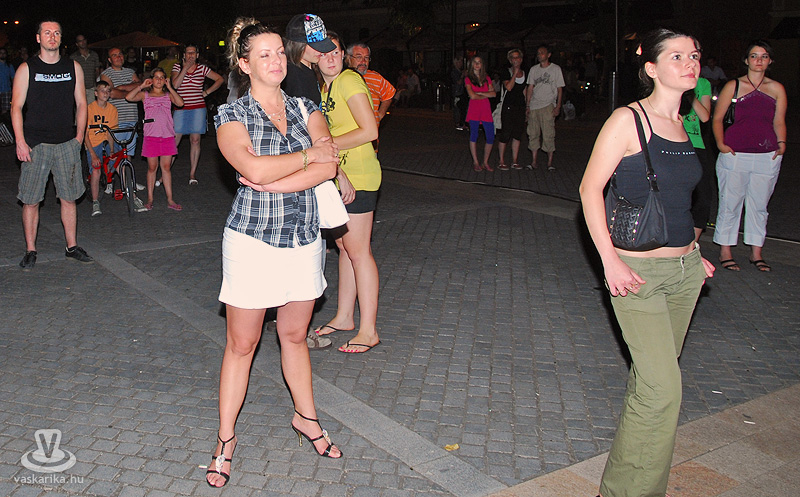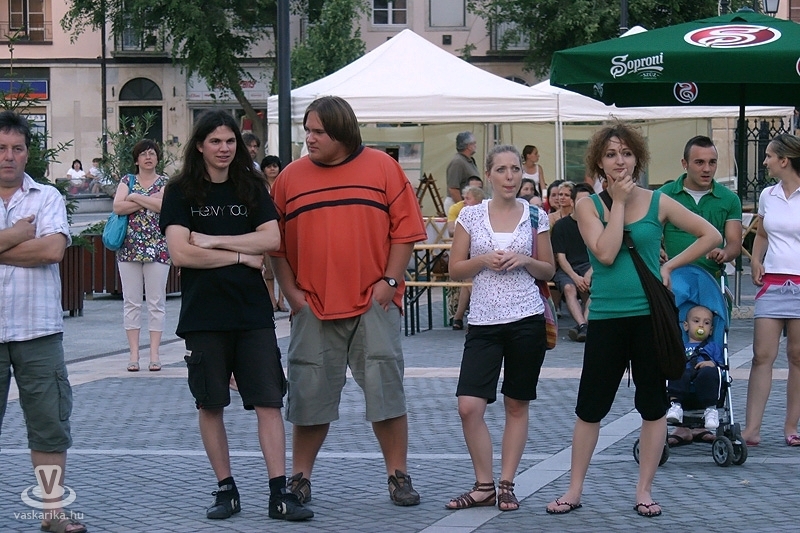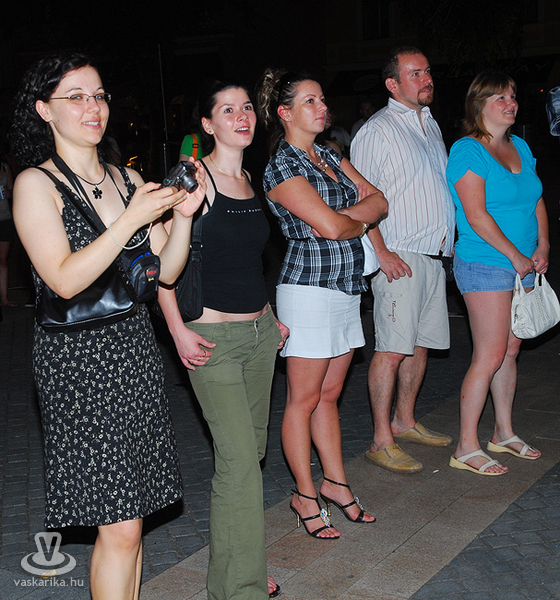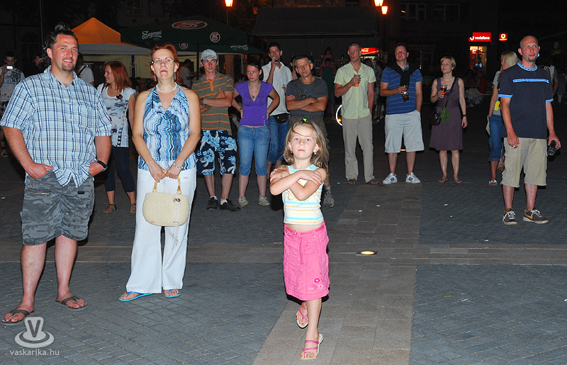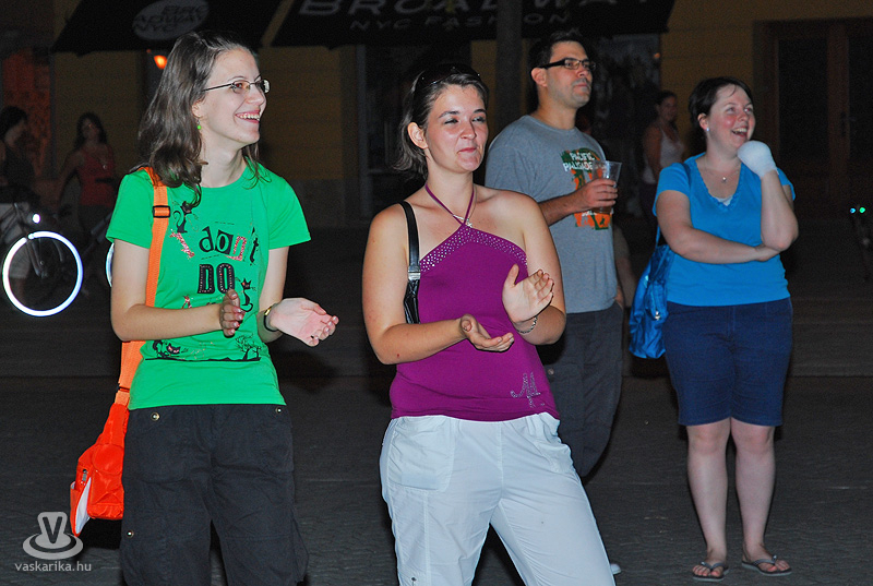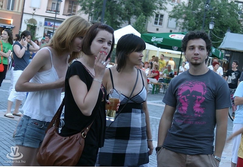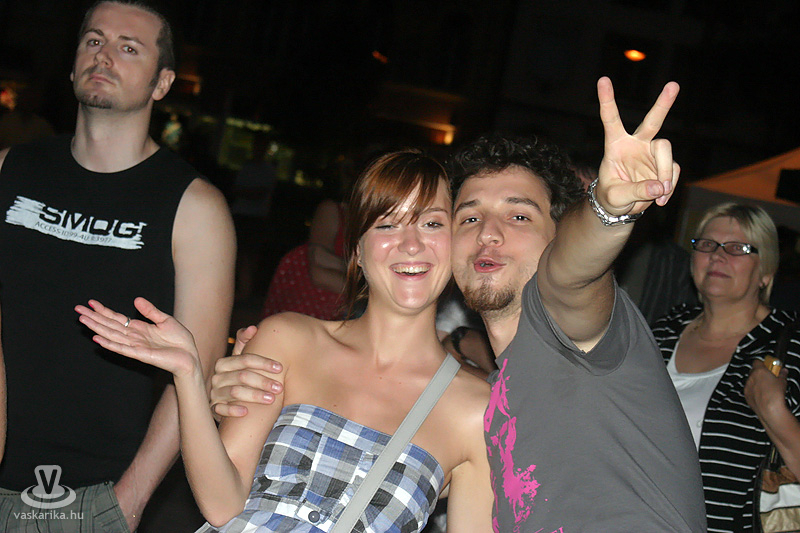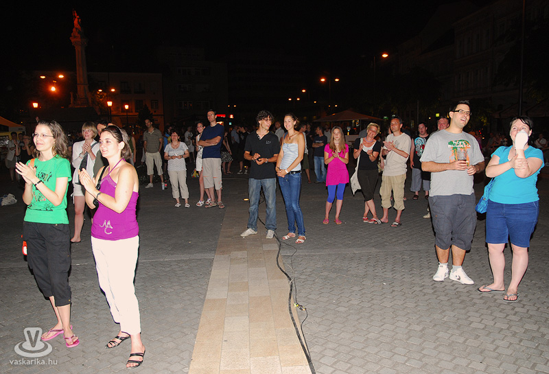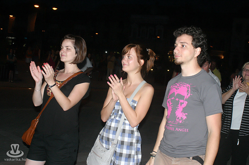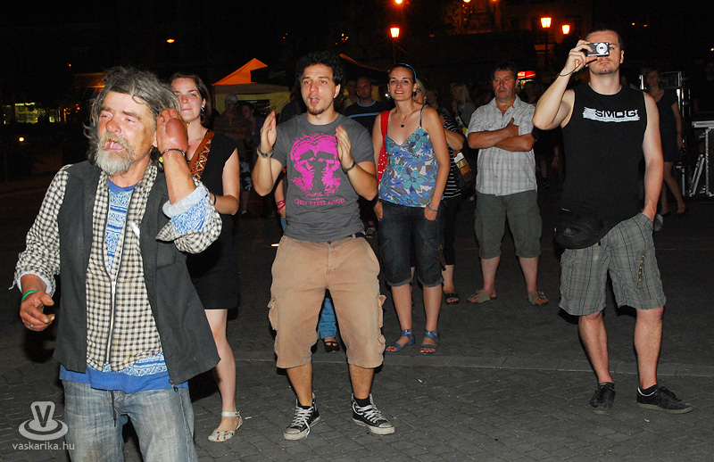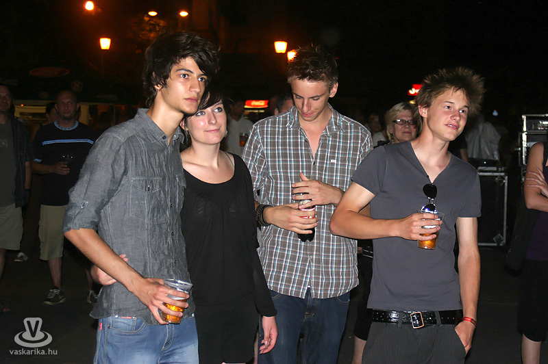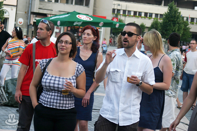 Na jó, ennél azért lehet, hogy kicsit többen, de a tér elnyelte a tömeget, és az első sorban elsősorban hajléktalan szórakozni vágyók hajlongtak a jó zenére, ezúttal nemcsak hajléktalanságukról, hanem hajlékonyságukról is tanúbizonyságot téve. A zenekarnak a relatíve kis tömeg sem vette el a jó kedvét, és „Szabadon" játszottak mindent, amit repertoár-kalapjukból épp előhúztak, mint bűvész a nyuszit. A nyuszi pedig ezúttal Beatles, Michael Jackson, Micimackó és 'A börtön ablakában', valamint túlnyomórészt Belmondo színekben tetszelgett. A „Lesz, volt, van" című 2006-os szerzeménnyel széles körben ismertté vált együttes tehát a már jól ismert slágerek mellett kevésbé népszerű, de annál zúzósabb dalokat is játszott, mindezt szokás szerint frappáns és improvizatív átvezetésekkel. Így osztották meg velünk többek között azt, hogy fociban a német Schweinsteiger a kedvencük, és németes akcentussal csempészték bele pár számba a nevét, továbbá óramű pontossággal kaptunk jelentést az aktuális foci vb állásáról (az előbb 6-0 volt, de ez nemsokára 4-2 lesz).