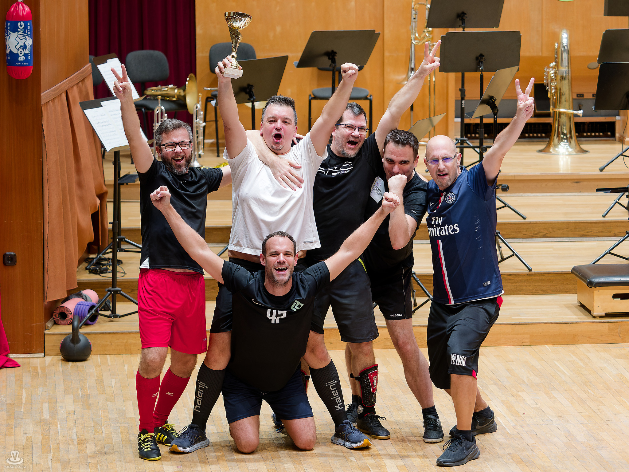 Zenei kíséret mellett összesen hat versenyszámban mérkőztek, pontosabban mókáztak a zenei atléták, s talán nem meglepő, hogy a "minden lében kanál" Rezesek kapták a legtöbb strigulát a szertorna - vívás - motorverseny - boksz - tollaslabda - foci hatos végén. Zúgott is a "Mindenki Rezes!".