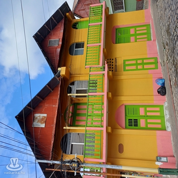 Ezután a Kék barlangnak nevezett öbölben megismételtem a vízi élményeket, melyet már a csónakos meg is örökített vízalatti kamerájával. Még a délután át is küldte őket, alighanem a borravalónak köszönhetően. Érdekes, hogy Guatemalában nem szokás a jattolás, aki kap, beleértve a pincéreket, idegenvezetőket, sofőröket, az nagyon hálás érte. Mivel már délután visszaérkeztünk Floresba, időnk volt alaposabban szétnézni a városkában. A szárazfölddel egy fél kilométeres keskeny úttal összekötött sziget kicsit mediterrán, kicsit karibi hangulatot, azaz melegséget, jókedvet árasztott. Először azt hittük, hogy az apály- dagály ciklusnak köszönhető, hogy a part menti utcákat hol félig, hol teljesen elöntötte az Itza-tó vize. Később láttuk, hogy nem húzódik vissza a víz, és ennek oka a sokat emlegetett globális felmelegedés. Azt prognosztizálják, hogy szép lassan eltűnik a város a tó habjaiban. Egy kis emelkedőn felmentünk a városközpontba, ahol a hófehérre meszelt, spanyolok építette templom állt, mellette a „szokásos" sportplacc, rajta kifogástalan kosárlabdapályával, ahol a fiatalok tucatszám dobálgattak. Egy tóparti étteremben vacsoráztunk, most már kényelmesen, ráérve. Figyeltük a városlakók hétvégi autós felvonulását: minden járműtulajdonos tett pár kört este a parton, a város körül. Olyan magamutogatás, vagy efféle lehetett, persze jó szándékkal. A tavon is beindult a hajóforgalom, kis, közepes, és nagyobbacska hajók köröztek. Némelyik úszó vendéglőként üzemelt, és az elmaradhatatlan 3 méter magas, neonfényes piros szív sem hiányzott az orrukról.