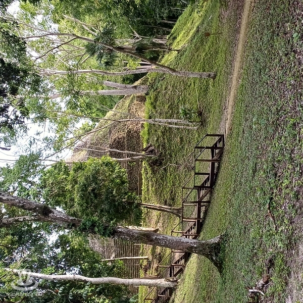 Még egy órát sem repültünk, mikor leszálltunk Flores, a régió fővárosának kicsiny, Mundo Maya (maja világ) nevű repterén. A 23.000 lakosú kisváros központi része a Petén Itzá tavon felépített szigetre települt, és az utolsó négyzetcentiméterig be lett építve. A fél óra alatt körbejárható szigetváros az egyik legszebb hely volt, ahol jártunk: igazi Paradicsom. A szálláshelyünk is kitűnő volt. Csak ledobtuk a cuccost, átpakoltuk az egyik hátizsákba a szúnyogsprayt, napolajat, elemlámpákat és persze jó sok vizet, és délre már ott álltunk a Yo Petén táblánál, ahol már vártak chilei, kolumbiai, mexikói útitársaink, hogy a várva várt Tikal romváros látogatást megtegyük kiemelt naplementés attrakcióval. A jegyvásárlás (borsos az ára, 500 quetzal, azaz 24.000 Ft volt a jegy kettőnknek) és a karszalag felcsatolása a park bejáratánál történt, kétórás utazást követően, de még jó messze a romoktól. A parkolótól gyalog folytattuk az utunkat a meredek struktúrák felé. Erős 3/4 órát, jó másfél km-t gyalogoltunk a dzsungelben, mire elértük a fő látványosságot, a Gran Plazát. Közben a peténi táj fajokban bővelkedő flóráját és faunáját is megcsodáltuk, főként a pókmajmok, az óriási levélvágó hangyák - akik méretes levéldarabokat cipeltek a csápjukkal-, és a termetesre növő selyemfák voltak a látnivalók.