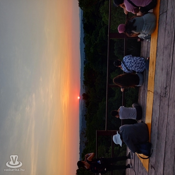 Már lassan alkonyodott, amikor az Elveszett Világba, az El Mundo Perdido felé vettük az irányt. Itt újabb, de jóval meredekebb másfélszáz falépcsőn értük el az épületegyüttes 35 m magas Gran Piramide-jét. Pont naplementekor. Hangos szót, nevetést, kiáltást nem lehetett hallani: mindenki átszellemülten fényképezte-filmezte a naplementét a piramisokkal, és a sötét dzsungellel háttérként. Törökülésben ülve szállt magába a 25-30 főnyi társaság. A fennkölt perceket csak néhány rikoltozó, hatalmas madár „társalgása" zavarta volna meg, de ez így, velük együtt lett emlékezetes. Már beesteledett, mikor az idegenvezetőnk - már hazafelé tartva, őrült tempót diktálva - a parkolóhoz terelte a vendégeit. Zseblámpáinknak köszönhetően nem lett bajunk abból, ha néha lemaradtunk tőlük. Este lett, mire hazaértünk.