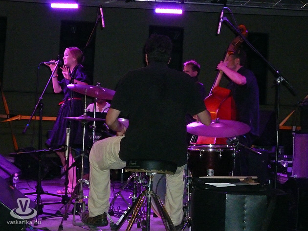 Aztán ahogy nekiálltunk kutakodni, jöttek sorban a meglepetések, a jazz dolgai, az óriási külföldi sikerek, Nicola Conte turnéján éneklés, és idén év elején a Bin Jip például. Rengeteg dolgot csinál, és amit eddig tőle láttunk és hallottunk egytől egyig minimum megsüvegelendő. Ehhez jön még a tény, hogy szemetgyönyörködtetően gyönyörű a hölgy, még a világszerte elismert hazai felhozatalból is kilóg sokak szerint. Az hogy ez így megáll-e, döntse el mindenki maga, de ha a kisugárzás-énekhang és stílus-szépség együttállás valakit nem győzne meg, javasoljuk, forduljon orvoshoz, akkor is, ha történetesen nem férfi. Számítottunk rá, hogy sokan lesznek kíváncsiak erre a koncertre, de hogy ennyien, az teljesen meglepő volt számunkra. A szemmel átlátható téren, szó szerint egy talpalatnyi hely sem maradt, eggyel több ember sem fért volna szinte el olyan helyen, ahonnan a színpad belátható volt. Ülőkoncertként indult, de gyorsan kiderült, hogy ez nem fog működni, mint ahogy az is, hogy nem fogjuk tudni szavakkal visszaadni azt, ami az orrunk előtt, és a fülünk mellett történik. Ritka az olyan koncert, ahol az ember az első hangnál már elmosolyodik, és ez aztán eltart még jópár órát, sőt az egész éjen, mi több, most, pár napra rá visszagondolva is fülig ér a szánk. Az erre az estére ötfőssé növekedő - Gyémánt Bálint gitárossal nőttek - kvartett a jazz-t is abban a szellemben játssza, amely alátámasztja azt, hogy nem mások terelgetik az énekesnőt útján, hanem belőle jön ez a "képben levés". A dob, zongora/billentyű, nagybőgő, ének standard felállás megvan náluk is, de mivel saját dalokat írnak, és azokat ismertük, már előrevetítették, hogy élőben körülbelül mit is fogunk hallani tőlük.
