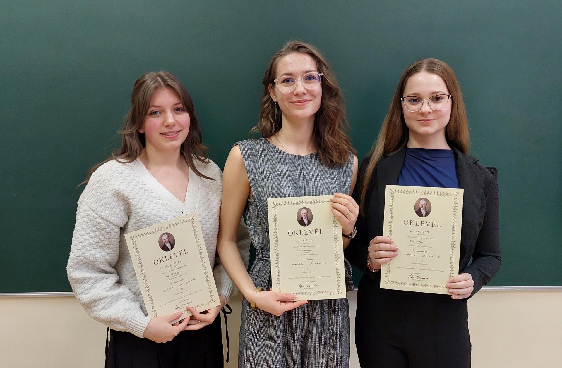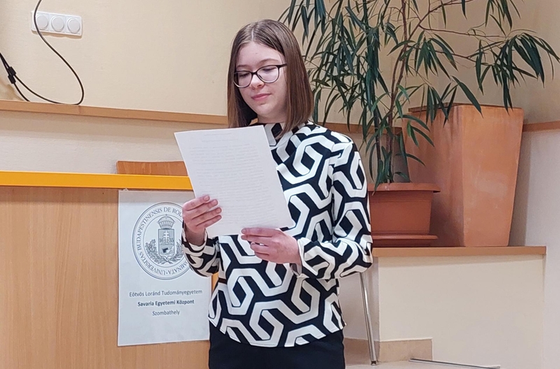 1. helyezett: Harkány Júlia, 11. évfolyam, Jurisich Miklós Gimnázium és Kollégium/Kőszeg, felkészítő tanára: Kovács Liza