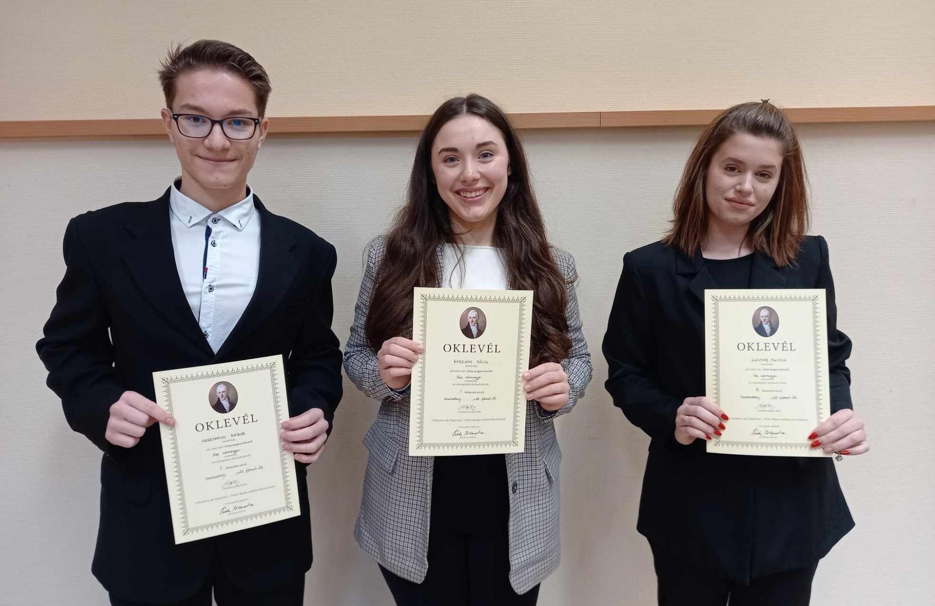 1. helyezett: Golub Emese, 13. évfolyam, Vas Vármegyei Szakképzési Centrum Kereskedelmi és Vendéglátó Technikum/Szombathely, felkészítő tanára: Mecséri Enikő