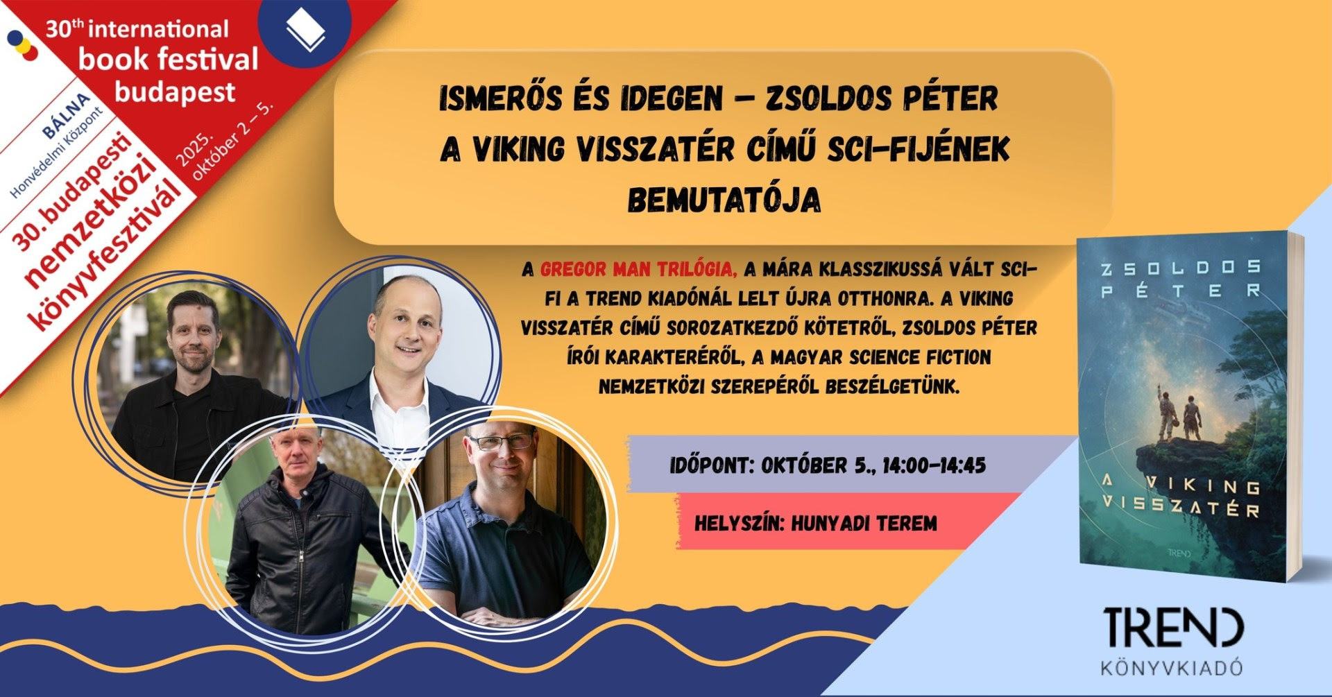 2025. Október 5-én, a 30. Budapesti Nemzetközi Könyvfesztiválon Domokos Gábor író, forgatókönyvíró, Markovics Botond többszörös Zsoldos Péter-díjas science fiction író, Veres Miklós muzeológus és Zsoldos Dávid, a szerző fia beszélget a kötetről, Zsoldos Péter írói karakteréről, valamint a magyar sci-fi nemzetközi szerepéről. Szeretettel várjuk az érdeklődőket 14 órától a Hunyadi teremben!