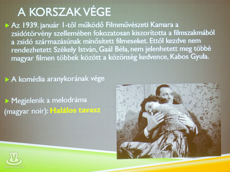 Végezetül a Dankó Pista című filmről beszélt Boros Ferenc. A hivatalosan századik magyar hangosfilm minden idők leghíresebb honi cigányprímásának állít emléket. A korszak egyik legjobbnak tartott rendezője, Kalmár László irányításával készült, nagy sztárokkal, jelentős költségvetéssel.