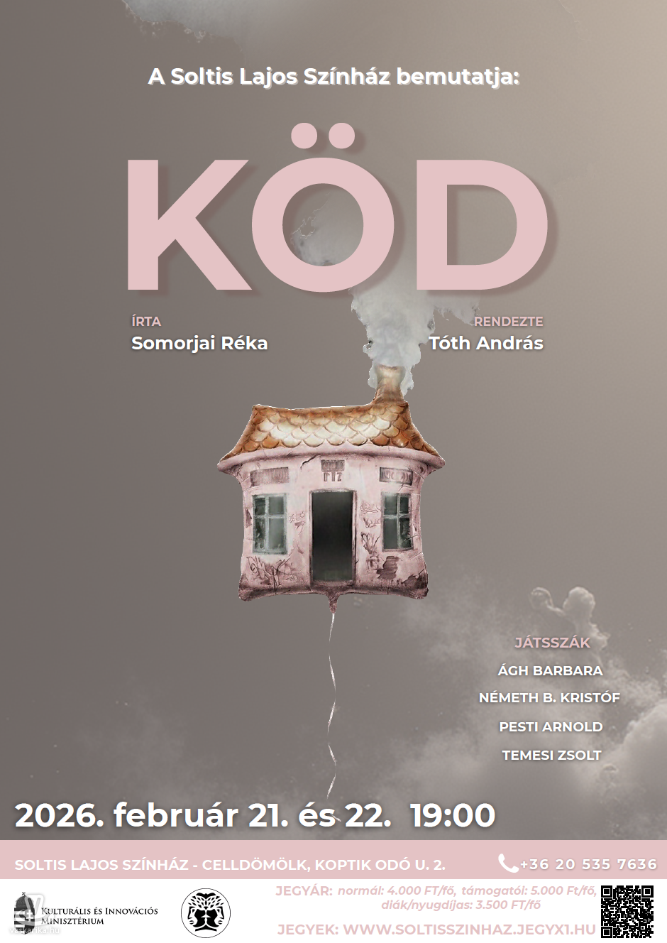 A celldömölki színészekre írt és az ő improvizációjukat is felhasználó darab a vidéki spirituszt és spiritualitást magába gyúrva igyekszik mélyre látni a vidék-város szakadékba. A Köd című előadás februárban két alkalommal is látható lesz.