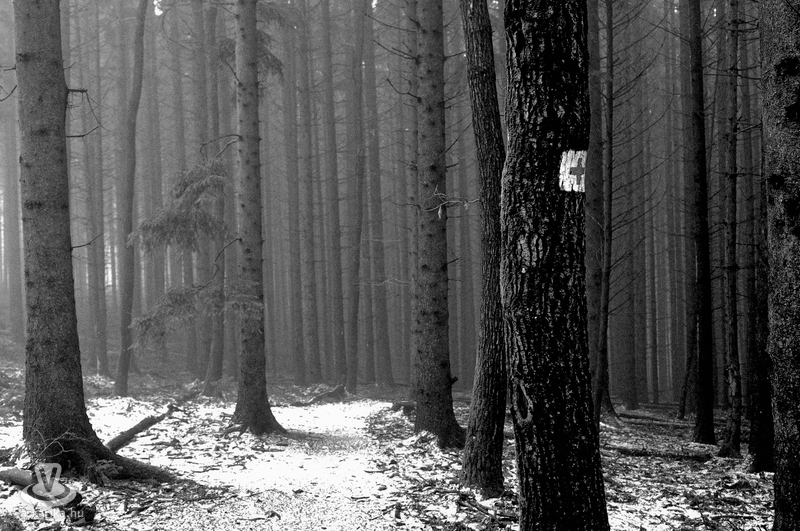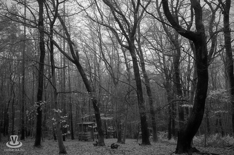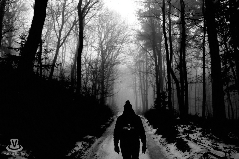 Gyaloglásunk Cákról indult, érintve a Wisinger-majort, ahol rátértünk a Piros turistaútra. Ahogy feljebb mentünk a hegyen, úgy sűrűsödött körülöttünk a köd, túlvilágivá változtatva a téltől halódó tájat. A hőmérséklet is csökkent a csúcs közelében, apró jégcsapokat növesztve a fenyők tüskéi közé, jégpáncélt terítve az ösvényekre, a hangokat is megdermesztve, végtelen csönddel betakarva az erdőt. Lefelé jövet érintettük a Hörmann-forrást, itt találkoztunk két túrázóval, majd Velem felé vettük az irányt a szerpentinen haladva, onnan pedig már sötétben haladtunk vissza Cákra a kertek alatt.