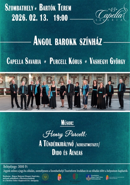Jegyek: online a https://www.jegy.hu/.../capella-savaria-es-a-purcell... oldalon, személyesen a Szombathelyi Tourinform Irodában és az előadás előtt a helyszínen kaphatók.