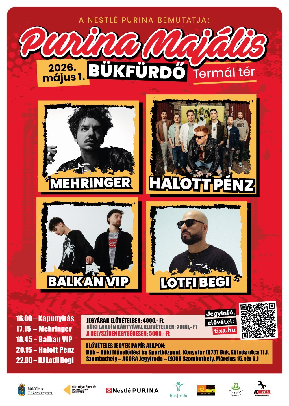A sort napjaink egyik legnépszerűbb feltörekvő sztárja, Mehringer nyitja zenekarával. Őket követi a jövő egyik lehetséges „sztárja", a Balkan VIP. Majd színpadra lép este 8 órától minden generáció nagy kedvence, a Halott Pénz! Az estét pedig Lotfi Begi zárja DJ produkciójával! Az ország egyik legnagyobb házibulija ígérkezik Bükfürdőn, mindenképp ott a helyed!