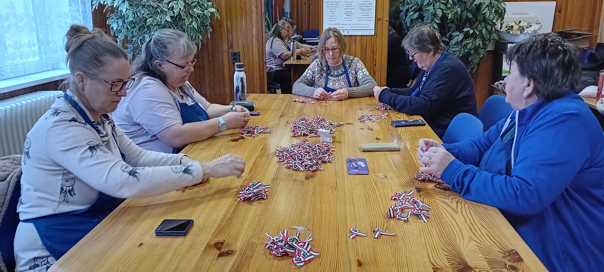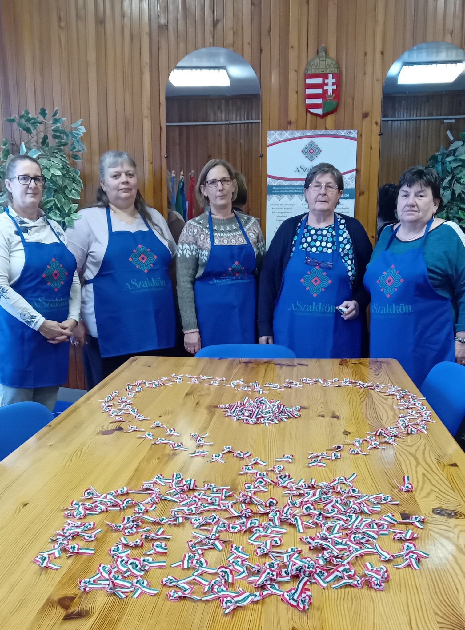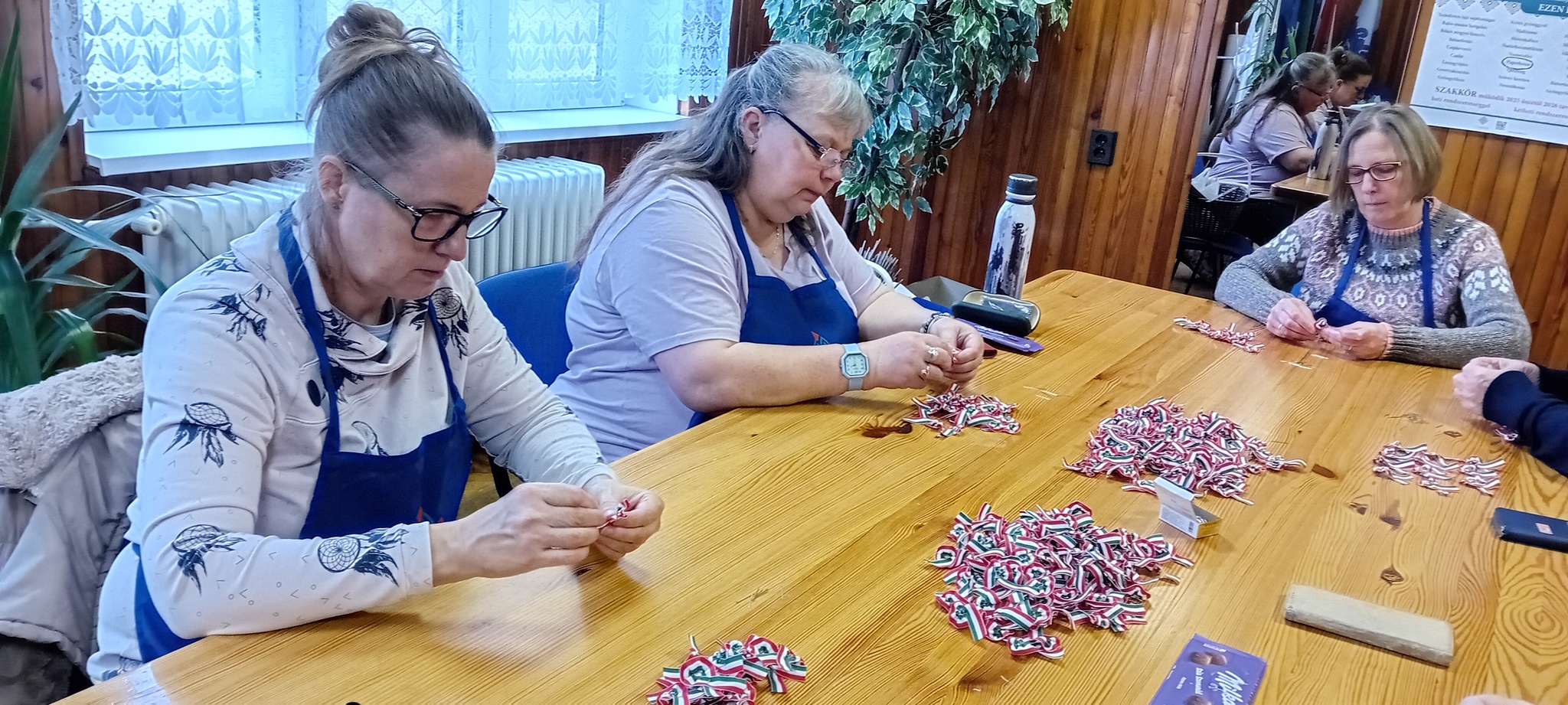 A szakkör tagjai összesen 500 darab, nemzeti színű szalagból varrt kokárdát készítettek el. A kézzel készült díszek nemcsak az ünnepi megemlékezések fontos jelképei, hanem a közösségi alkotás erejét is kifejezik. A résztvevők számára a közös munka egyszerre jelentett hagyományápolást, kreatív időtöltést és közösségépítő élményt.