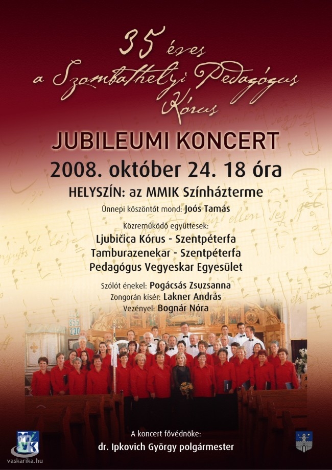 35 éves jubileumát ünnepli a Pedagódus Vegyeskar Egyesület, melyet az MMIK színháztermében október 24-én 18 órakor kezdődő jubileumi koncertjével kíván emlékezetessé tenni. Az előadás 19:30 körül ér véget, amit kiállításmegnyitó és táncáz követ.