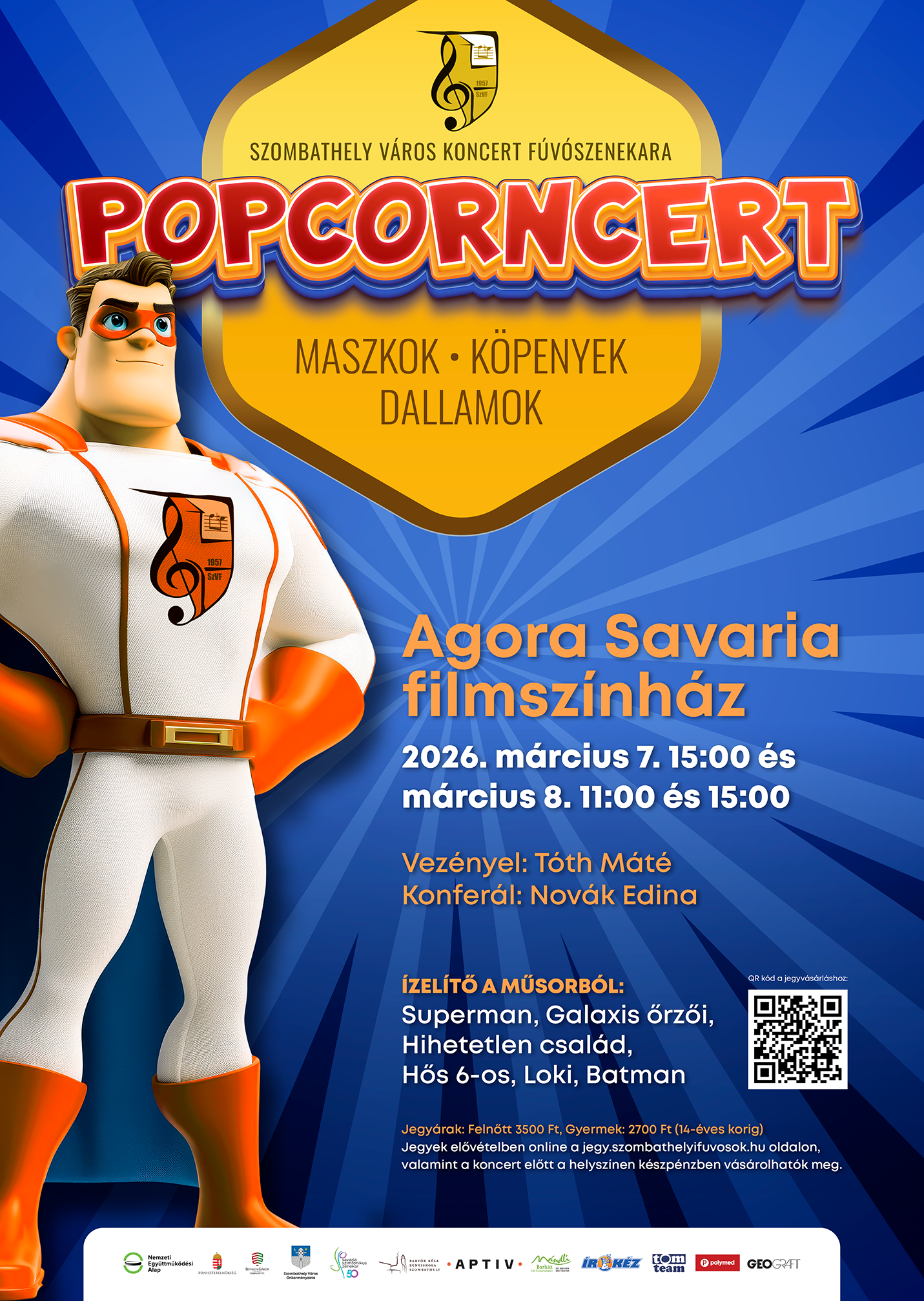 Tóth Máté, a Szombathely Város Fúvószenekar Egyesület művészeti vezetője elmondta, hogy a Szombathely Város Fúvószenekar idén már harmadik alkalommal tölti meg élettel a Savaria Filmszínház nagytermét népszerű popcorncert-sorozatával. Minden évben egy meghatározott tematika köré építik a műsort, amely idén a szuperhősök világát idézi meg. A választott filmzenék között olyan kasszasikerek szerepelnek, mint a Bosszúállók, a Superman, a Batman vagy a Fekete Párduc, de az animációs filmek kedvelői is hallhatnak részleteket a Hős hatosból.