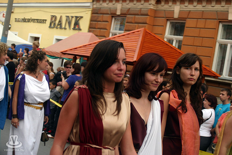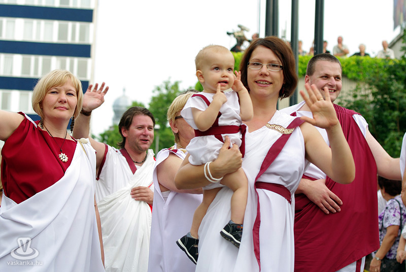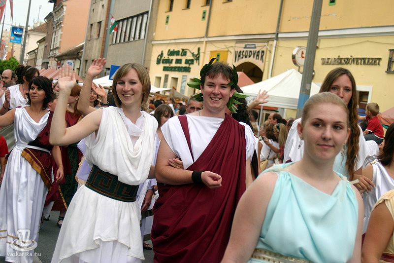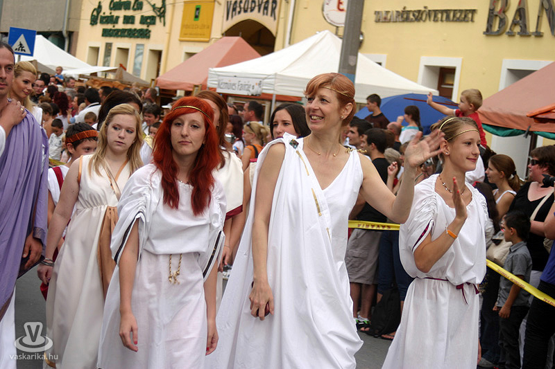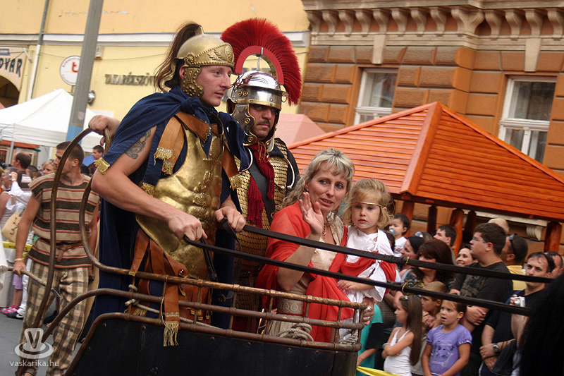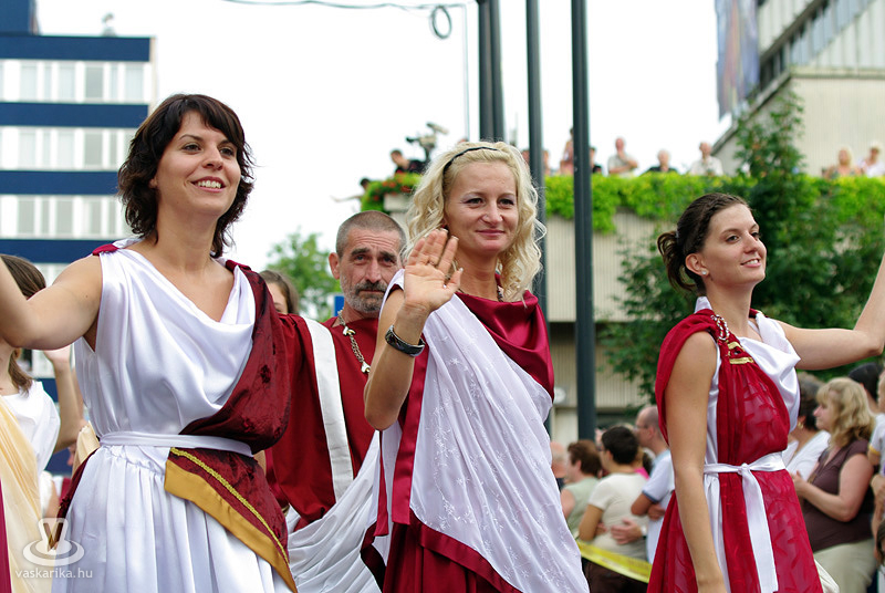 2010. 08. 20-án pénteken 18.00 órakor a lemenő nap fényében indult a karneváli menet a Történelmi Témaparktól, mely az első századtól egészen a 30 éves háború idejéig (XVII. sz.) kalauzolt bennünk végig a történelmen. Idén is közel ezer jelmezes vonult Szombathely belvárosán. A több mint 300 autentikus katonai hagyományőrző - többek között gladiátorok, legionáriusok, keresztes lovagok, germánok, varégok, hunok, honfoglaló magyarok, végvári vitézek, muskétások - mellett színészek, csepűrágók, artisták, zászlóforgatók és tűzvarázslók egész serege gondoskodott a nagyérdemű szórakozásáról. A színpompás menetet ezúttal is mutatványosok, gólyalábasok, dobosok, életnagyságú zsiráfok, zenészek, tűz-, és zászlóforgatók hada tette még látványosabbá és hangosabbá.