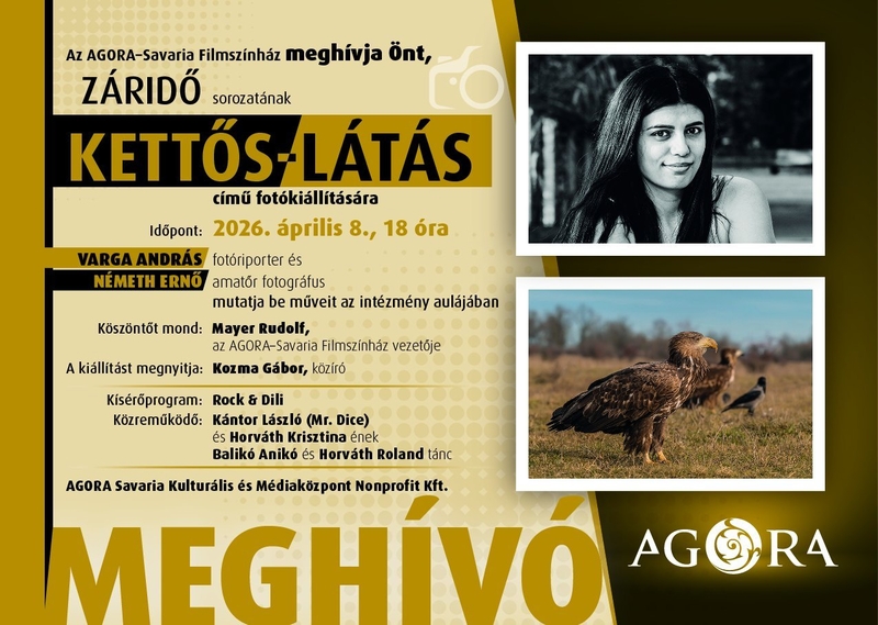 A Záridő című, vasi fotósokat bemutató-felkaroló sorozat következő alkalmán lapunk fotóriporterének, Varga Andrásnak, valamint barátjának, Németh Ernőnek nyílik közös tárlata április 8-án az AGORA Savaria Filmszínház aulájában. A tárlatot a sorozat ötletgazdája, Kozma Gábor nyitja meg.