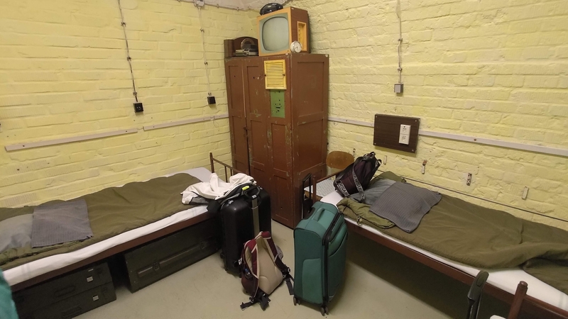 A bátrak a múzeum látogatása mellett akár ott is maradhatnak éjszakára, hiszen a bunker egy része hostelként üzemel. Eredeti vaságyakon, katonai hálózsákokban burkolódzva lehet aludni az állandó 14 C-os hőmérsékleten. Szóval ide azért elkel meleg pulóver vagy extra takaró a pizsama fölé.... A zuhanyzó, a mosdók a régi idők hangulatát idézik. A zuhany lánccal működik, addig folyik, amíg húzzuk a láncot. Tényleg ne számítson senki luxuskörülményre, de retró élménynek tökéletes.