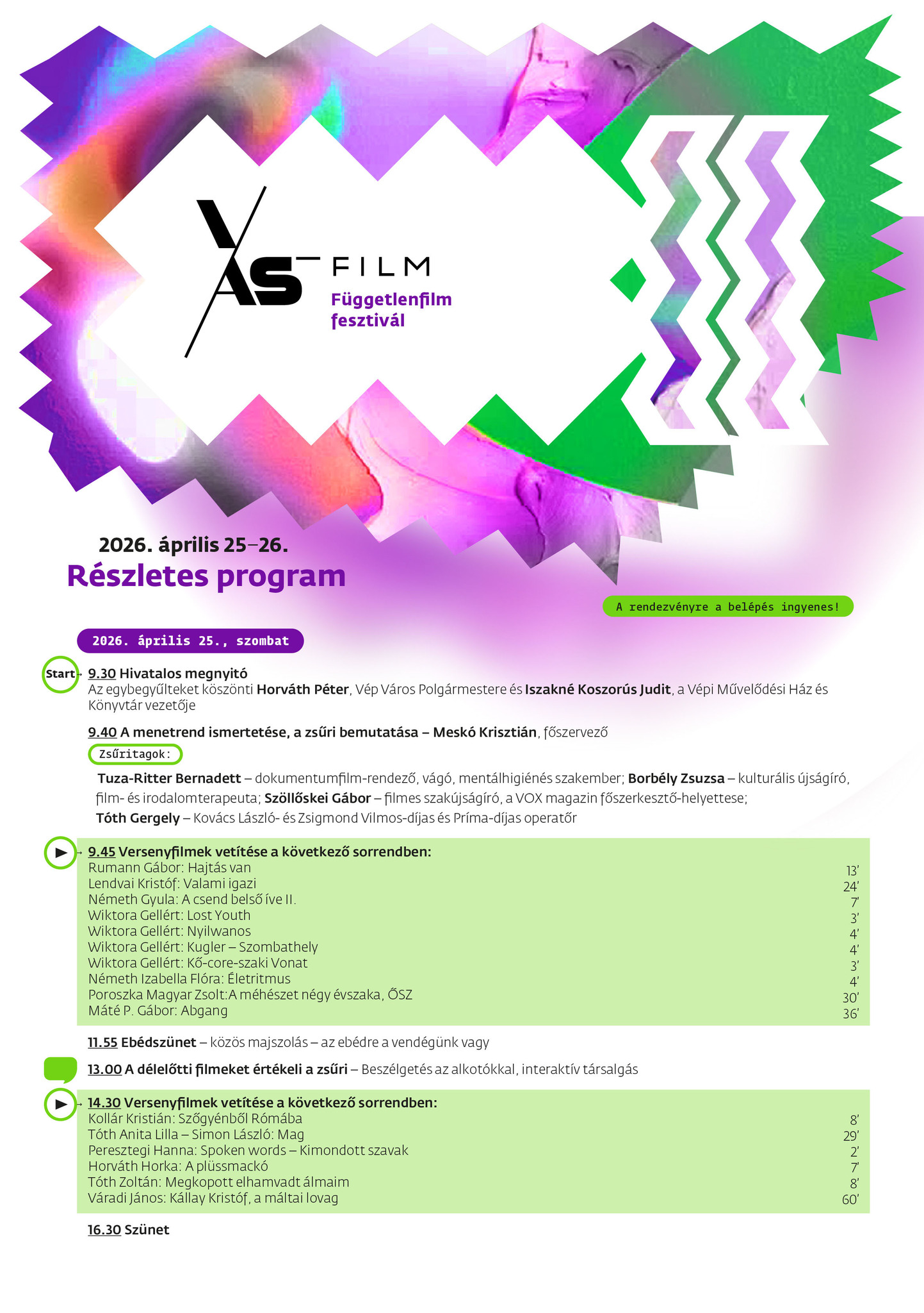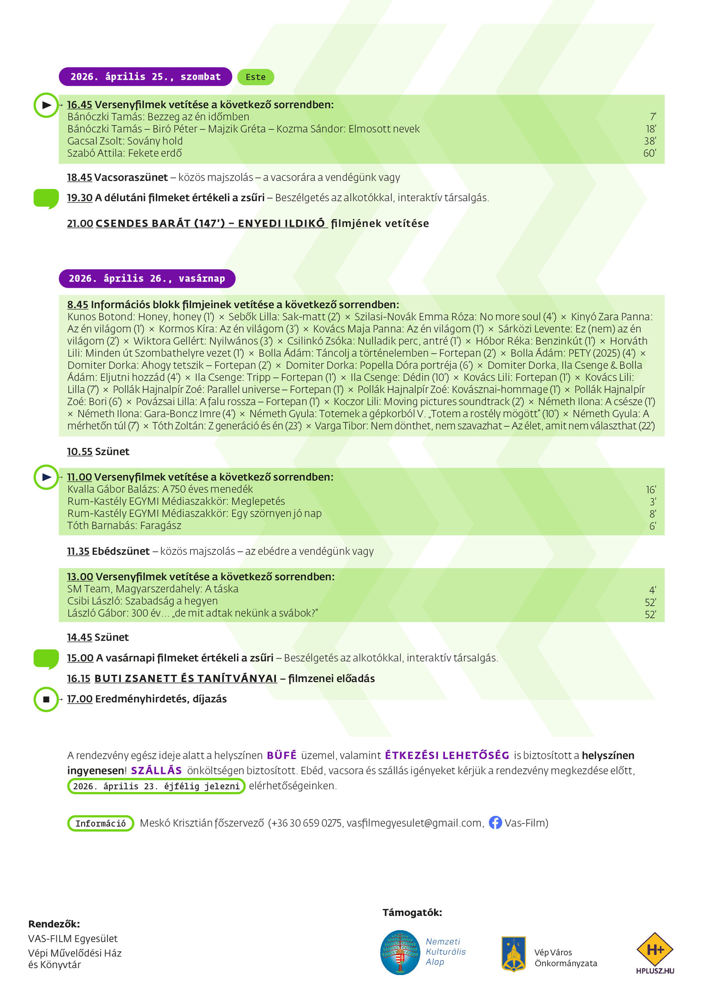 A VAS-FILM 22  Függetlenfilm Fesztivál részletes programja