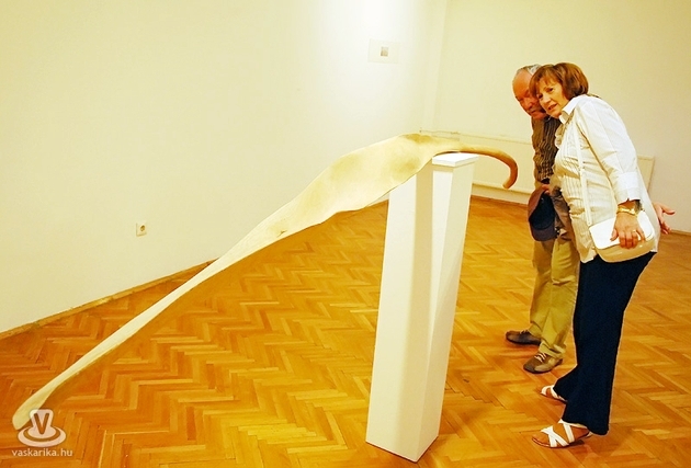 A megnyitó előtt volt alkalmunk pár szót váltani Szirmai Nórával, akitől megtudtuk, hogy mindössze két hónapja költözött Szombathelyre, párjával. A szegedi születésű lány előtte Budapesten tanult, Farkas Ádám és Körösényi Tamás pártfogásában. Arra a kérdésünkre, hogy fűrész vagy fejsze, ő természetesen rávágta, hogy fűrész - pedig a kérdést először nem is gondoltuk komolyan. Megtudtuk, hogy bizony minden egyes darabot saját maga fűrészel, smirglizik, illetve pácol be. Az alapanyagokat természetesen nem olyan egyszerű beszerezni, a Bambusz című alkotás rozsdabarnás, narancssárgába hajló fáját például egy budapesti boltból kapta meg, mint hulladék anyagot. Ahogy mondta, a természet szeretete, ismerete nélkül azonban nem születhettek volna meg ezen alkotások.