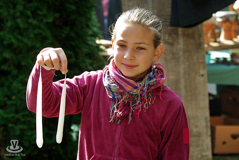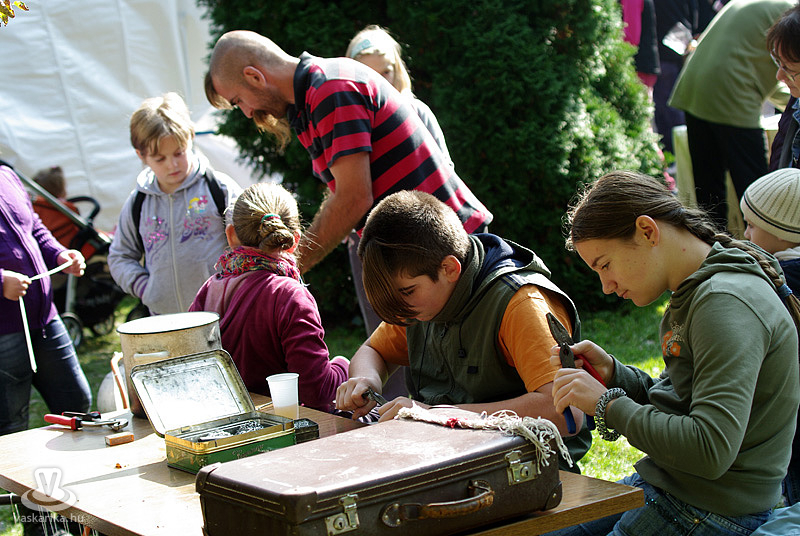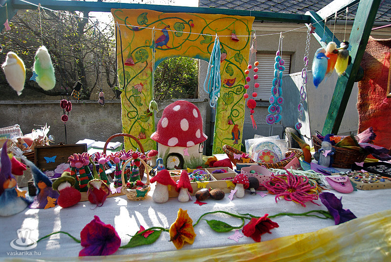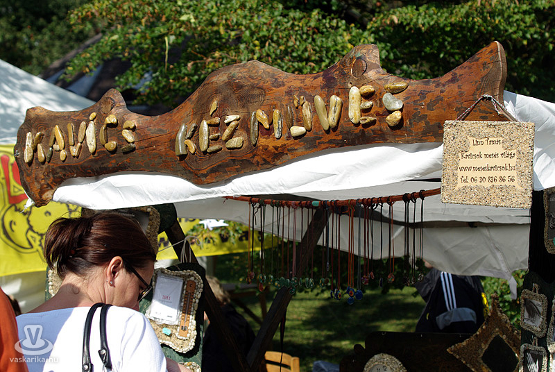 A kézműves kirakodóvásár számos üde színfoltjából kiemelkedett a levendulát szárított csokorként vagy potpourriként árusító, és a kavicsok szó szerint mesés világát megidéző stand. Utóbbi helyen az érdekes alakú, élethűre festett kövek gombákat és körülötte élő pici állatokat, katicákat, hangyákat, különböző fajta bogarakat, csigákat mintáztak meg. De vízben és vízparton előforduló békákat, tóparti teknősöket is találhattunk a kavicsbirodalomban, melyeknek „testrészeit" formájuk szerint válogatta össze Linn Tibor. Így születtek mesebeliek és valódi, szinte elevenre festett tárgyak, melyekkel akár otthonunk sziklakertjét is díszíthetjük. Búcsúzóul kedves gesztusként egy szerencsekaticát kaptunk a kreatív és szimpatikus „kőfestőtől", azzal az ukázzal, hogy a szerencse mindenkire ráfér...