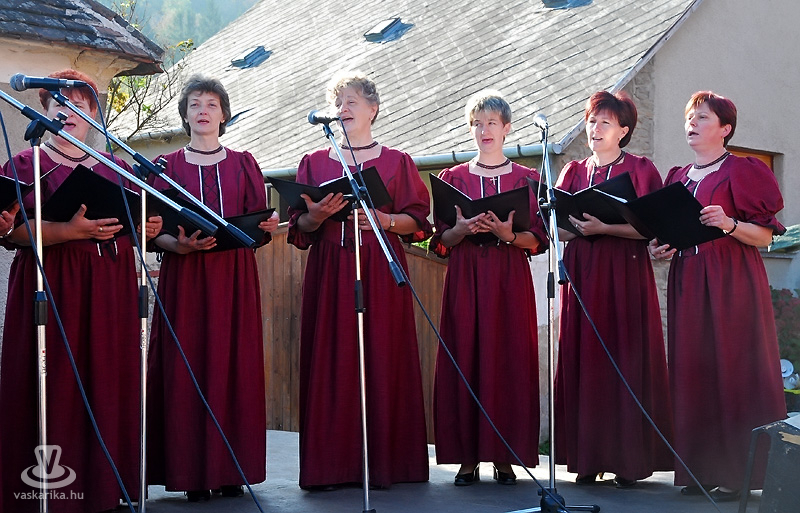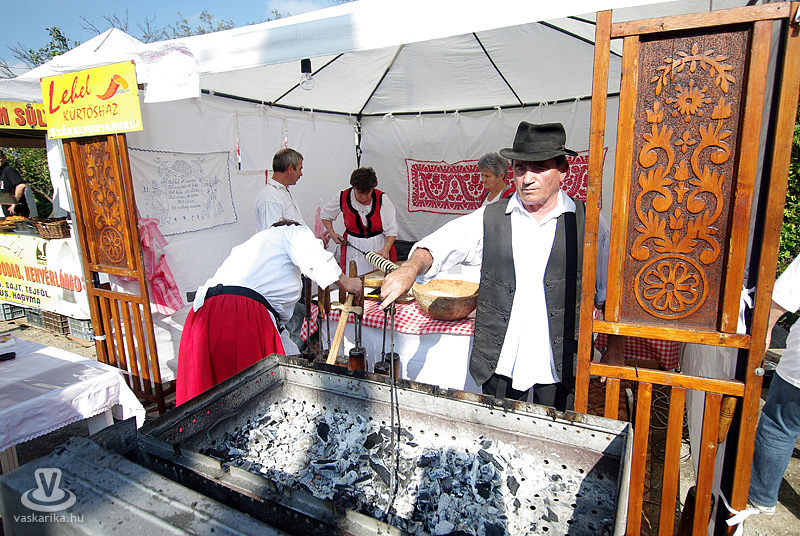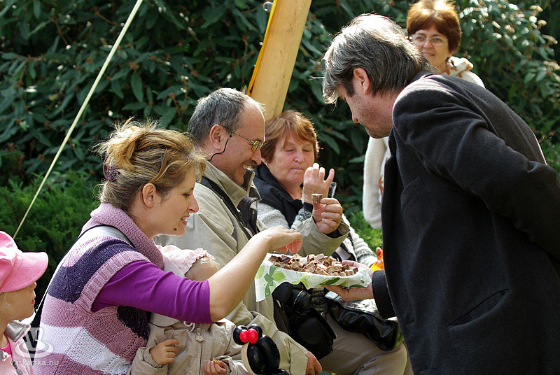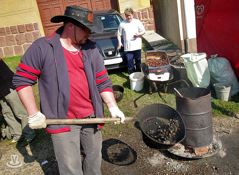 A vasárnap délelőtti programok közül a gesztenyés sütik versenyét - Nagy Bandó András távollétében - Joós Tamás, az MMIK igazgatója és Novák Edina vezényelte le. A nyertes süti a Kőház előtti népes közönség előtt szervírozásra került, s aki esetleg kimaradt volna a helyi specialitás megkóstolásából, annak számos „gesztenyésgazda" kínálta sült, „süteményesített" és egyéb gasztronómiai kiteljesedésben portékáját.