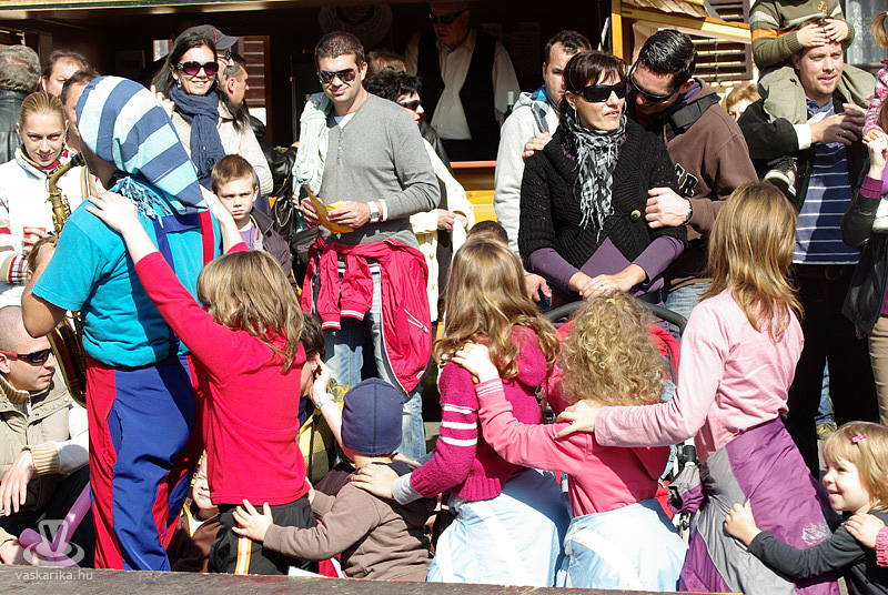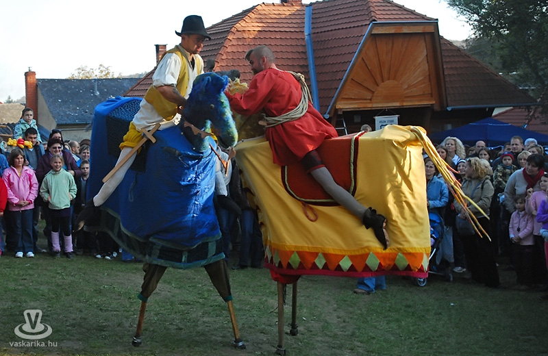 - Ne etessék a lovakat! - hangzott el többször, ugyanis kürtöskalácsból és más nyalánkságból próbáltak csenni a lókötő langaléták. Specialitásuk, hogy bevonják a közönséget a játékba, felnőttet, gyereket egyaránt. Műsoruk kortalan, minden korosztályt leköt, gyerekek, apukák, anyukák, nagyszülők egyforma lelkesedéssel fogadták játékukat. A Savaria Karnevál szinte állandó fellépői, ennek is köszönhetik népszerűségüket.