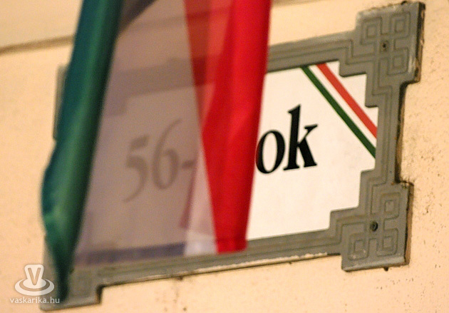 Szerintem jelen esetben ez a legkevésbé fontos a fotót illetően, hogy éles, vagy sem. Sokkal inkább az üzenete ( 56 OK! ). Kellett piszmognom vele, mire a szél hatására a zászló épp úgy takarta ki az utcatáblát, hogy az 56-osok tere feliratból annyi látszódjon csak, amennyit akarok. Szokták mondani, hogy a jó fotó fejben dől el. :) Meg a jó ügyek is. Ez nem túl jó fotó, de van üzenete és jó ügyet szolgál... most egy kommentelőnek kezdjem el ezt magyarázni, hogy mitől nem éles egy 2000 ISO mellett, 1/10, f4 paraméterekkel készült fotó? :))