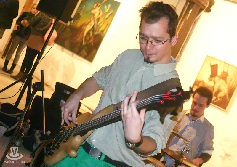 Nos, nem is csodálkozunk ezen, hisz, ha eltekintünk a megnyitó beszédben is viccesen megemlített fallosz-rengetegtől, még akkor is épp elég sok minden olyan van a képeken, amitől egy fiatal lány megrettenhet. Még a meglett férfiembereknek sem könnyű szembesülni a képekkel. P. Szabó kiemelte, hogy a legfontosabb dolgunk az, hogy meglássuk az iróniát ezekben az alkotásokban. Nekünk ez már elsőre sikerült, és úgy érkeztünk erre az estére, hogy tudtuk mi vár ránk. Teljesen szakmaiatlan véleményünk nem osszuk meg most, mindössze annyit tennénk hozzá a megnyitón elhangzottakhoz és a beharangozóban leírtakhoz - amiben talán minden benne van, amit a művészről tudni lehet -, hogy pont olyanok művei, mint a zenekara. Közismert eszközökkel él, de azt teljesen sajátságos módon használja. Most, hogy a koncert a kiállítótérben zajlott, tudatosult igazán, hogy mindkét dolog ugyanarról szól.