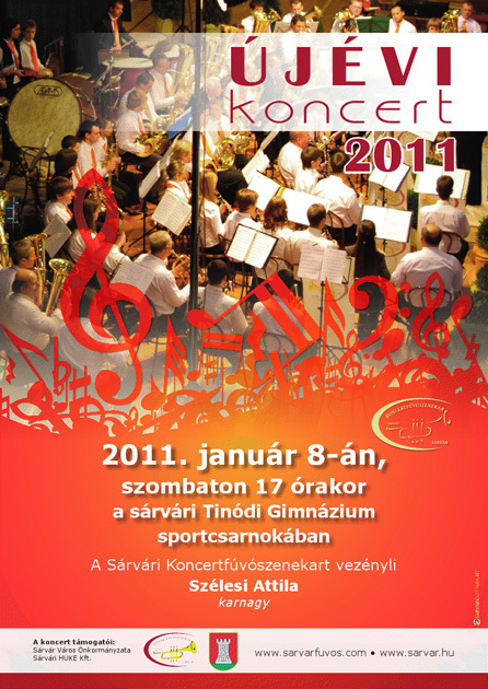 A Sárvári Koncertfúvószenekar 2011. január 8-án, szombaton 17 órai kezdettel rendezi meg újévi koncertjét a Tinódi gimnáziumban. Az elmúlt évek teltházas előadásainak tapasztalatai alapján, a közönség kérésének megfelelve a zenekar erre az alkalomra a díszleteken túl egy többszintes színpad beépítésével varázsolja át a tornacsarnokot valódi hangversenyteremmé. Ezúttal látványban is igazi koncertélményben lesz része a hallgatóságnak, még élvezhetőbbé válik a már megszokott, minőségi zenei előadás.