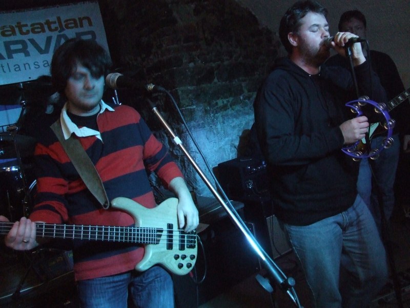 „A zene mérgezze jóleső érzéssel lelkünket, na meg jöjjetek mindig koncertre, mert nélkületek üres lenne az éjszakai járat!" - vallja mottóként önmagáról az együttes. Bár e sorokat a honlapjukon olvastam, a tartalmi mondanivalón - a fellépésüket követően - nagyon is elgondolkodtam. A zenekar ismertetőjele egy buszjelzőtábla. A nagyvárosban élő ember helyi járatos utazásának egyik legmegfelelőbb tömegközlekedési eszköze a busz kellene, hogy legyen. A korábbi években jómagam is gyakran igénybe vettem az éjszakai járatos autóbuszt, kis idő elteltével azonban egyre ritkábban. Egy meglehetősen sötét színezetű képernyő alakult ki gondolataimban, hiszen a hely megfelelő ismeretének hiányában buszon utazván is gyakran eltévedtem. Az ember akkor utazik busszal éjszaka szívesen, ha megérti a hangszóróból, hogy hol is kell leszállni. Ha az utca sötét, és nem látom a célpontot, legalább a sofőr által mikrofonba mondott utcanevet jó, ha értem. Legtöbb esetben a nagyvárosi sofőrök motyogtak, hadartak, a megállók nevének eleje vagy vége pedig el volt harapva. Nos, megint a várpincébe kellett lemennem ahhoz , hogy megtapasztaljam, igenis léteznek még kiváló sofőrök - noha nem biztos, hogy mindig a szakmában. Horváth Tamás személyében hamar megtaláltam az idillikus buszvezetőt. Tamás nem csak kiváló énekes - szövegíró, hanem remek szövegmondó is. Aki az ő énekbeszédét hallgatja , az meg is érti, amit mond és nem téved el. Ritka az olyan előadó, akinél szinte minden szót tisztán lehet érteni a mikrofonban. Mivel a zenekar a tavalyi évben adta ki első lemezét Aranylemez címmel, koncertindításkor ebből hallhattunk először válogatást. A jó hangulat fokozása érdekében minden vadiúj dalhoz egy velős történet is dukált. Elhangzott a Szédítő, a Tükörben, A rendszeren túl. A Veled utazgatom című nóta amolyan igazi Éjszakai járatos dalként csendült fel, zötykölődtünk a zenekar felhívására rendesen. Meztelenül és esztelenül ordítottuk ki magunkat a Bermudáknál ,majd meghallgathattunk egy átiratot, mégpedig a Quimby együttes sikerdalát : a Most múlik pontosan-t. Egészen egyedi feldolgozásban hozta el az együttes a szórakozni vágyóknak : a lassú tempótól eltérően most gyorsabb, élénkebb szövegmondással. A repertoár végén a Nyuszi című dallal a „kanos" nyúl is elfutott, aki mindezek után „ szedett egy kis zöldet, és el is szívta."- hallhattuk kedvderítő zárszóként.
