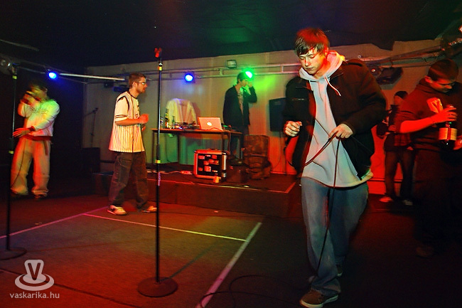 Az idő már fél egy felé járt, amikor a Purestyle Division rapperei képviselték Szombathely hangját az este folyamán. Nem túl hosszú, de annál összeszedettebb fellépésükkel felspannolták a közönséget az est lényegére: NKS és Norba körülbelül egyórás showjára. A hangtechnikával már a Purestyle fellépése alatt is gondok voltak, ami Norbáék alatt sem tűnt teljesen megoldottnak. A késői kezdés hatására a koncert végét körülbelül 70-80 ember várta meg, kiélvezve a Pirománia, a Nagykönyv, az Oh La La és a félplayback nyújtotta lehetőségek teljes gyönyörét. A fellépések után az emberek lelkesedése és kitartása eléggé megcsappant, legtöbben a hazautat, néhányan az utolsó fröccsöt, páran pedig a már kivesézett ugrabugrálást választották. A kb. 230 fős létszám a buli ezen időszakára egészen leredukálódott, hajnali 4 órára csupán alig tucatnyian bírták a kiképzést. Fél ötkor megtörtént a kapuzárás, szerencsére pánikmentesen.