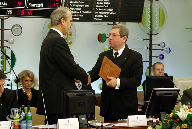 Harangozó emléklapot vehetett át Puskás Tivadar polgármestertől.