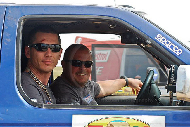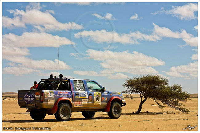 NI: Mi egy minimálisan átalakított Nissan Navarával indultunk, elég erős autó, de sajnos nem volt elég. Csak a hátsó tengely rugózását tudtuk átalakítani, később ennek Mauritániában meg is lett a következménye, az egyik ottani szakaszon eltört az autónk első tengelyének a rugózása, amit csak nagy nehezen tudtunk helyre pofozni egy helyi szerelőnél.