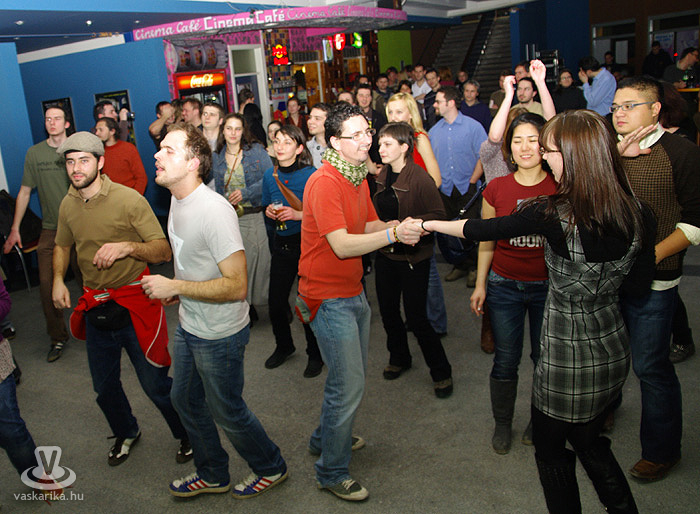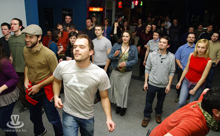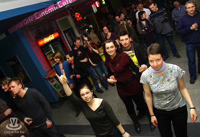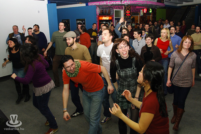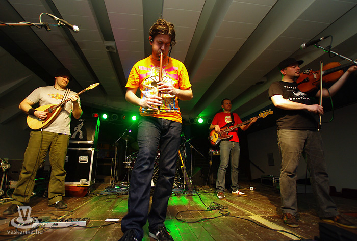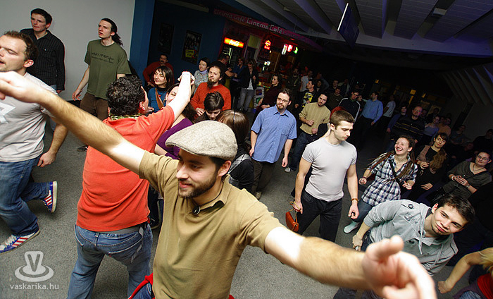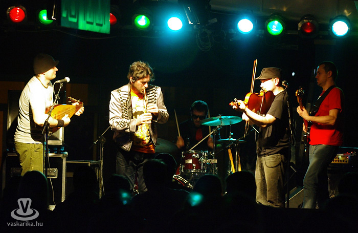 A fenti vélemény alkotójának nagy vágya volt, hogy élőben is láthassa a bandát, nekünk viszont nem kellett nagy áldozatot hozni érte, mondhatni vágyunk kérés nélkül is teljesült: a mozi aulája megfelelő helyszínnek bizonyult, és a tömeg sem volt akkora, hogy ne fértünk volna be maradéktalanul. Sőt, valamelyest több érdeklődőt érdemelt volna ez a szívvel, lélekkel zenélő, fantasztikus zenei utazásra invitáló zenekar. Némi bemelegítés után felcsendült egyik legismertebb szerzeményük, a Csángó Boogie, ez pedig meghozta a várt eredményt, mert sokan - köztük mi is- végigtáncoltuk nemcsak ezt a számot, hanem az egész koncertet.