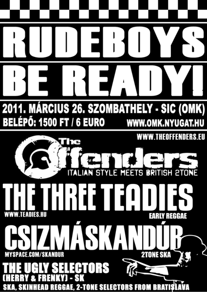 Március 26-án, szombaton a Savaria Ifjúsági Centrumban mutatja be legújabb lemezét az olasz The Offenders. Látható lesz továbbá a CsizmáSkandúr és a The Three Teadies is.