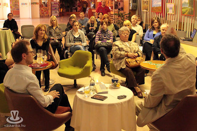 Fűzfa Balázs és Halmosi Sándor beszéltek arról is, hogy az irodalomkönyvekben nagyon kevés szó esik a kortárs irodalomról, pedig a fiataloknak nagy szükségük lenne rá, hogy ma élő költővel is megismerkedjenek. Petőfi Sándor például már 23 éves korában szerepelt mint kortárs tananyag az akkori könyvekben - milyen jó lenne, ha ez ma is megvalósulhatna! Ha a tankönyvben nem is, de az MMIK-ban egy igazi költővel találkozhattunk, és élményekkel gazdagon távozhattunk.
