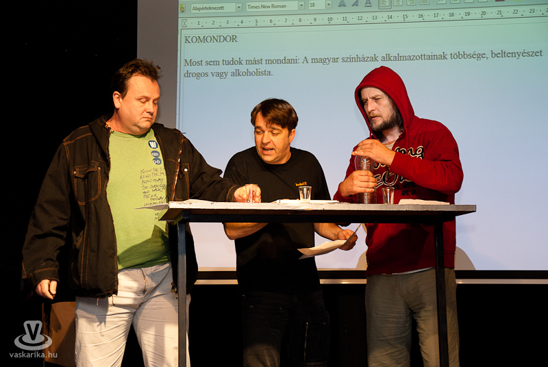 A leglényegesebb üzenet mindenképp az, hogy az elénk tárt adatok, vagyis a számok alapján egy erős tíz százalékos bérletvásárlással, illetve eladással egy szintre kerülhetnének a tervek és a megvalósíthatóság közös nagy mérlegén a súlyok. Az erre az idényre eladott bérletek száma egész pontosan 3581, ezt kellene olyan 4000 mínusz 10-20 körülire hozni. Mi magunk örülnénk, ha sikerülne, hisz mindaz, amit eddig láttunk tőlük és hallottunk róluk, az megérdemli a bizalmat, semmiképp nem egy nyögvenyelős erőlködés. Friss, mai, szókimondó és merész, nálunk ezek jó színházi ismérvek. Erre a legjobb bizonyíték a tájékoztatás végén elő is került, ugyanis meglepetés készült, ami már magában nem meglepetés. A már megnevezett Kommentszínház debütálását láthattuk két jelenet erejéig. A ma az internetről szól, az internet pedig hemzseg a kommentelőktől, főképp a névtelenektől. Mint a városba „újonnan" érkezettek, a WSSZ is kapja a savat ebben a formában.
