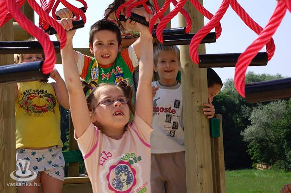 EU-konform faháncsra huppanhatott, aki elvétette az ütemet a mászókán, illetve térkõbesöprés-kompatibilis "nullanégyesen" landolhattak a csúszdáról talajtfogók. A kötélmászókás "írókézek" visongva pördültek a "kötél-labirintusban", míg a pelen kás "töpörtyûk" csodálkozva skandiztak eme sokszínû (mese)világra. A vagányabbak trambulinon és a mászófalon vezethették le az adrenalin ifjonti túlbuzgását, a médiafotósoknak meg pihentetõként maradt a szokásos sörömködõ-sátor.
