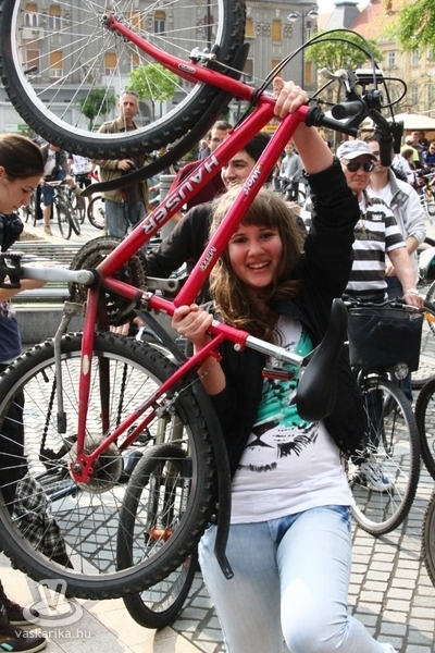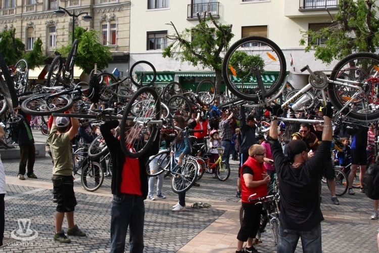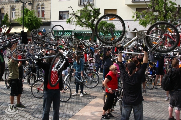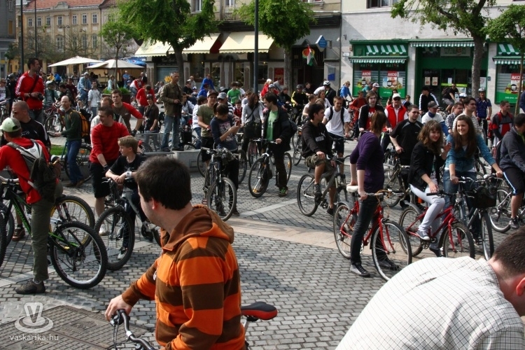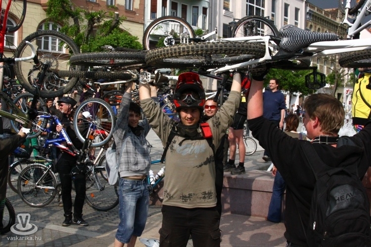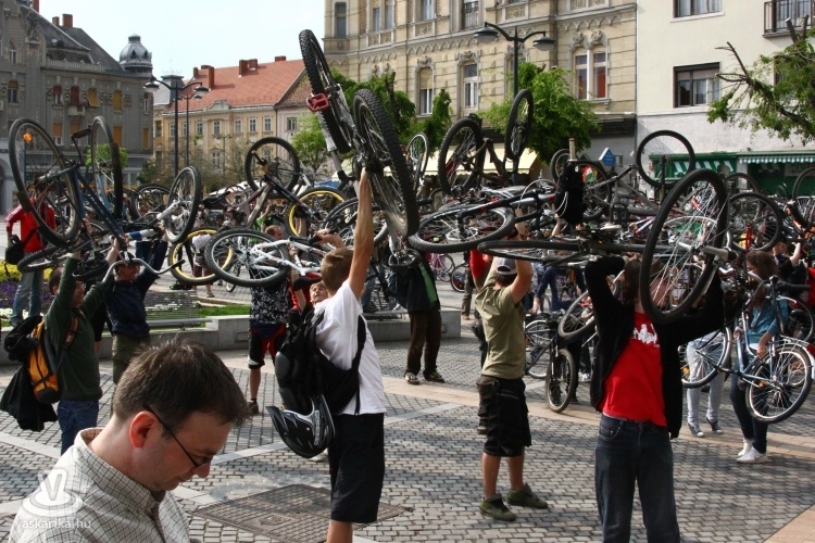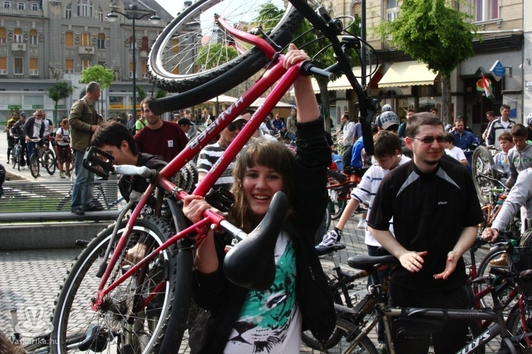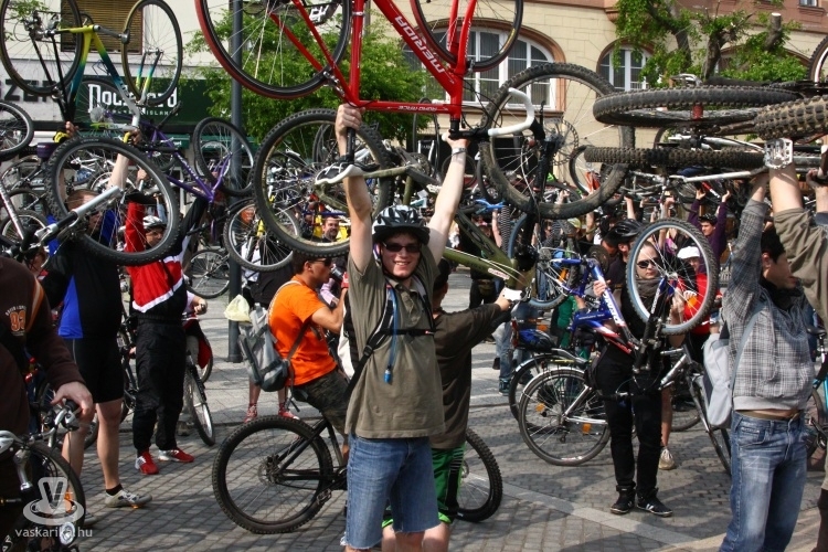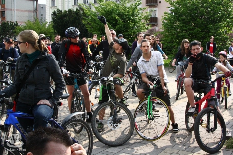 - A Sportháztól 195-en indultunk, az útközben csatlakozókkal a tömeg 210-re főre duzzadt, mire az Emlékműhöz értünk. A fenyegető viharfelhők és a visszafogott médiahátszél, valamint az elveszett plakátok ellenére rekordot döntöttünk a résztvevők számát illetően. A vonulás során betartottuk a KRESZ szabályait, az autósok türelmesen fogadták, hogy néha egy-két percet várniuk kellett, amíg átvonultunk egy-egy kereszteződésen. Nemcsak kétkerekűvel vettek részt, volt görkoris és háromkerekű fekvőbiciklis felvonuló is. Az Emlékműnél tervezett délutáni piknikezést, programokat az eső nagyjából meghiúsította, de a továbbiakban is tervezünk közösségi programokat, pl. túrákat, bringapólót, közös szerelést, filmvetítést stb., ahol a jó időről is gondoskodunk - nyilatkozta lapunknak Dávid.