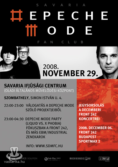 Az immáron két éves Savaria Depeche Mode Fan Club ez évi utolsó klubrendezvényét 2008. november 29-én rendezi meg Szombathelyen, a Savaria Ifjúsági Centrumban. Az estét egy rövid összeállítással nyitják, melyben áttekintik a Depeche Mode tagok szólóprojektjeit. Az ezt követő partyn egészen reggelig, a rengeteg Depeche Mode sláger mellett fókuszban lesz a Front 242, és más EBM/industrial zenekarok.