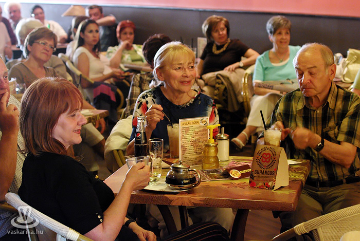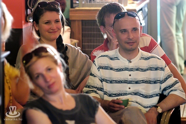 Többszörösen debütáltunk, hisz ez volt az első alkalom, hogy beültünk erre a sorozatra, és vesztünkre az is először fordult elő, hogy jól kitaláltuk azt, hogy a technika segítségével rögzített anyagból majd megírjuk a történteket. Az elsőt persze nem bántuk meg, hisz tényleg egy remek hangulatú és érdekes adomázás történt, azonban diktafonunk nem volt képes magáévá tenni az elhangzottakat, illetve olyan visszhangosra sikeredett a rögzítés, mintha egy udvari kút mélyéről érkeztek volna a szavak. Tehát marad a saját kútfő, illetve amit megőrzött a tavasz által már eléggé túlpörgetett szürkeállományunk.