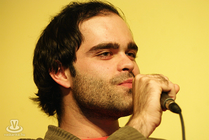 A saját bevallása szerint örök elkéső Kristóf Rolandot a Nevető emberben, az Öt az egyben, és a Kabaré előadásokon láttuk eddig játszani, és cseppet sem szakértői véleményünk szerint mindháromban kitűnően hozta a figurát. Mint ahogy a Café Frei színpadán is teljesen jól szerepelt, pedig ott nem egy előre kitalált személyt, hanem saját magát kellett elő- és eladnia. Persze tudjuk, hogyegy színésznél ez a minimum, de azért elgondolkodtunk, hogy azért nem lehet könnyű ez senkinek sem, hisz sokan nem szeretik kiteregetni maguk, pláne nem egy nagy közös szárítóban.