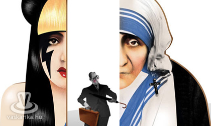 És mégis: annak ellenére, hogy Lady Gaga hús-estélyije nem Kalkuttai Teréz gúnyájára hajaz, meg kell állapítanunk: több a hasonlóság közöttük, mint a különbség. Mindkettőjük munkásságát hódolattal fogadja saját népes közö(n)sége.