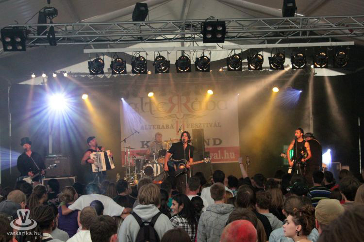 Hogy is tehetne másképp a Violet Eye pop-rockjának hallatán, ami zeneileg rengeteget fejlődött, de összképet még mindig nem adó kinézetében merészen széthúz. Megy a r'n'r életmód, és bár sajnáljuk egy kicsit, hogy egy taktust sem sikerült elkapni az előttük fellépő Black Sound zenéjéből, úgy gondoljuk, valójában ők indították el az Alterába 3. napját. Sok helyen nem értettünk egyet a zenekari sorrendekkel, például az itt következő Jóindulat sem volt teljesen autentikus választás erre a napra, de hogy a Paddy and the Rats hogy az ördögbe került Copy Con közvetlen szomszédságába, végképp rejtély. A Patkányok eszeveszett tradicionális ír folk-durvítása valami fenomenális élményt képes nyújtani, ebben a zenekarban nem a frontember van a zenészek koszorújában, hanem az egyénien megszólaló hangszerek mögötti emberek egyensúlyban egymással. Nagyon tarol, végig olyan érzés volt velük bulizni, mint a Titanic fedélközében pörgettyűzni Kate Winslettel. Éles váltás is volt Copy raggázását kapni ezek után az arcba, de hamar ráhangolódtunk. Ahogy mostanában szerintünk a Paddy jobb a Firkinnél, úgy hasonlóképp érezzük a Copy Con - Ladánybene 27 vonalon is: Copy mélyebb, árnyaltabb, élvezhetőbb műsorral jött.